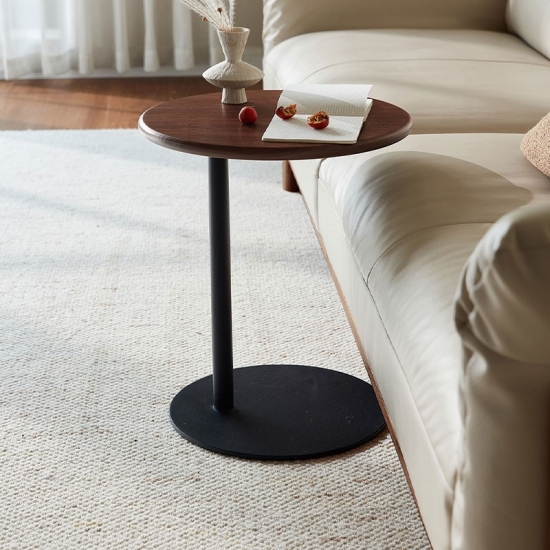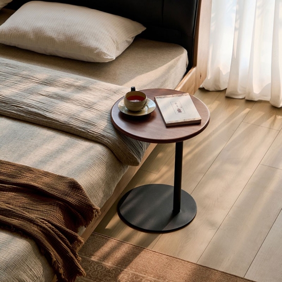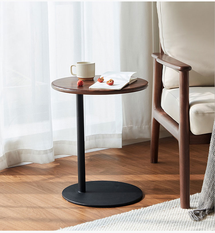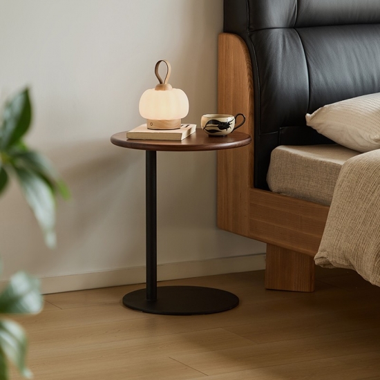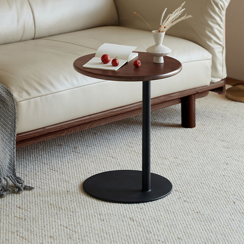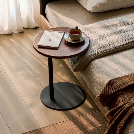 Mesa de centro redonda portátil marrón para sala de estar y dormitorio RQ4J-A |