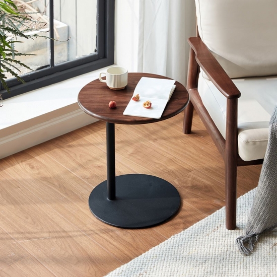 7Mesa de centro redonda portátil marrón para sala de estar y dormitorio RQ4J-A