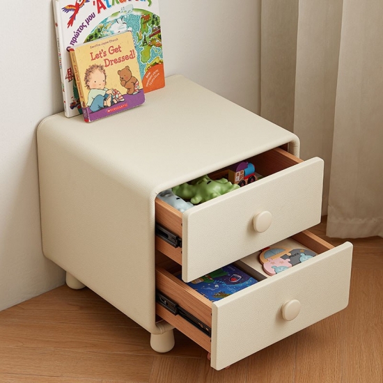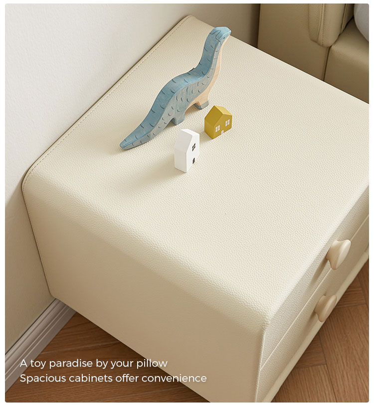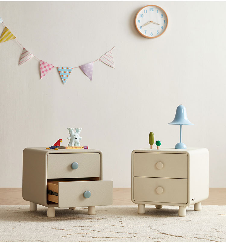 Cajones dobles espaciosos: Dos cajones de deslizamiento suave ofrecen un amplio espacio para mantener los cuentos para dormir, los juguetes favoritos, los pijamas y otros artículos esenciales perfectamente organizados y al alcance de la mano.