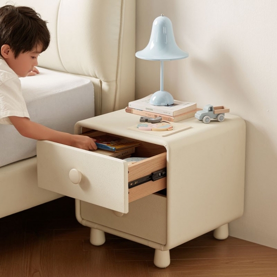 7Mesita de noche infantil blanca, adorable y funcional D367-A
