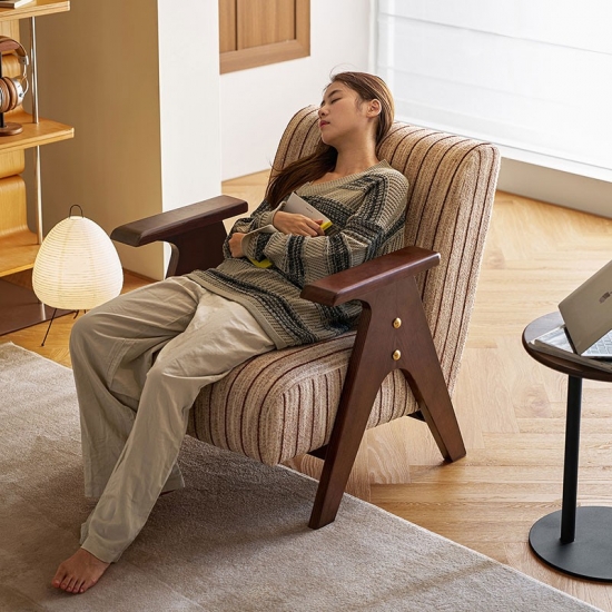 Diseñada para una comodidad duradera y un estilo atemporal, esta moderna silla combina una robusta estructura de madera maciza con un tapizado de tela de primera calidad. El asiento y el respaldo, generosamente acolchados, ofrecen un soporte excepcional, convirtiéndola en el lugar perfecto para leer o relajarse en su sala de estar. Su diseño versátil combina a la perfección con diversos estilos de decoración, desde rústicos hasta modernos. Una adición duradera y elegante a cualquier hogar.