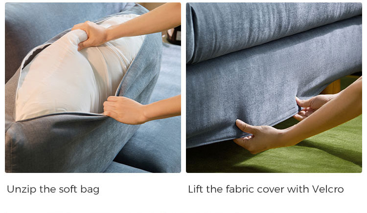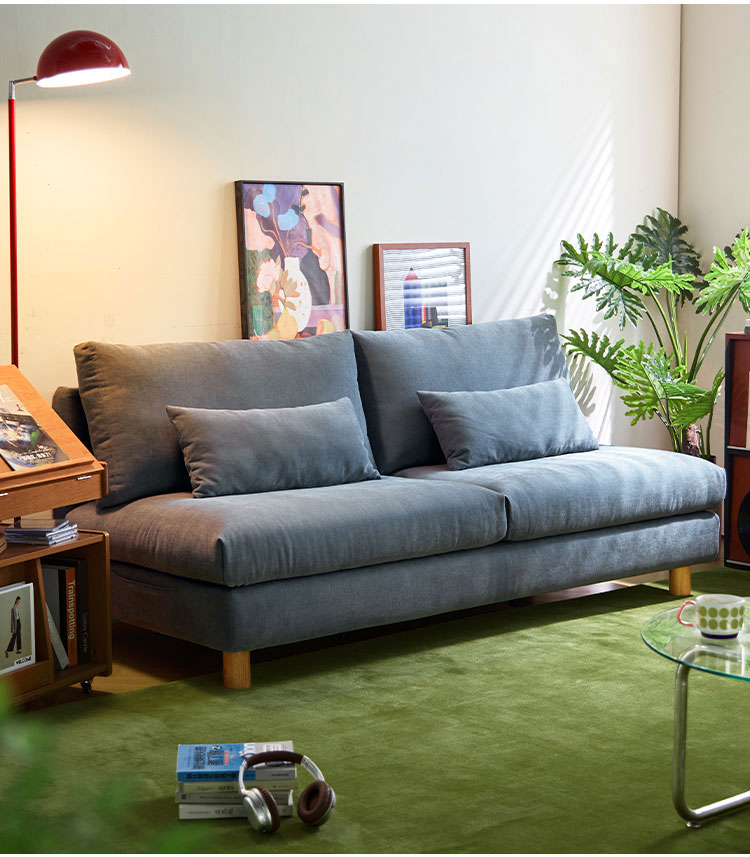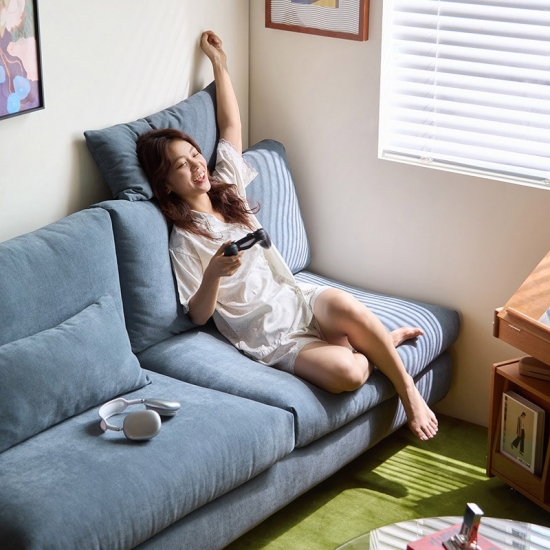 Sofá de dos plazas versátil de tela neutra en color azul LINSY BS326-A |
