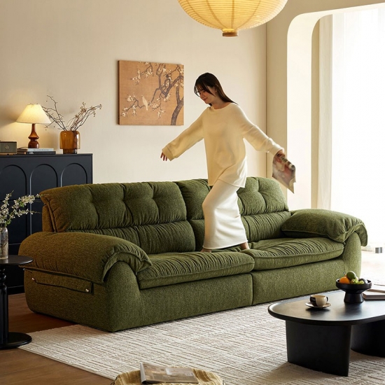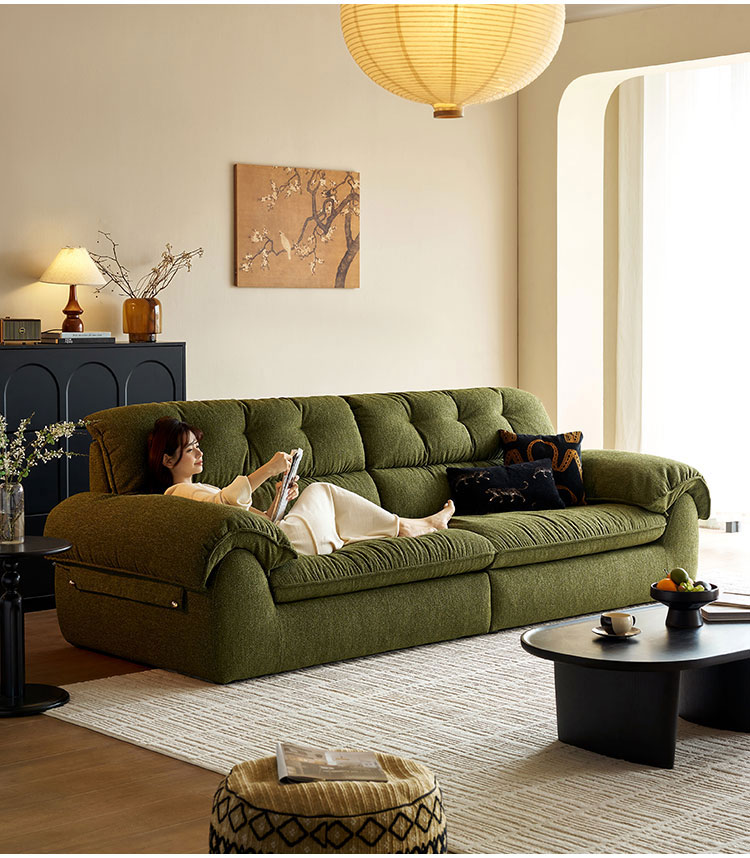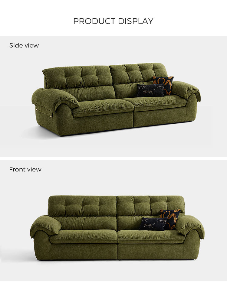 Añade un toque atrevido pero relajante a tu hogar con este sofisticado sofá de tela verde. Combinando una silueta elegante y contemporánea con un exuberante tono inspirado en la naturaleza, este sofá de 2 a 3 plazas crea un punto focal vibrante en cualquier habitación. Su tapicería suave y transpirable, junto con su diseño moderno, lo convierten en la combinación perfecta de comodidad y estilo de alta gama.