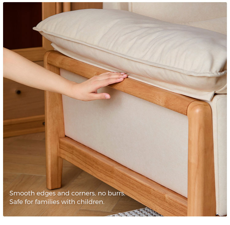 Estructura de madera maciza + asiento de esponja + tela |