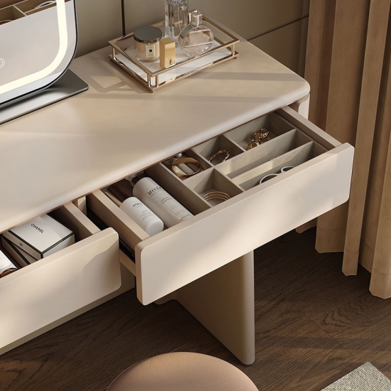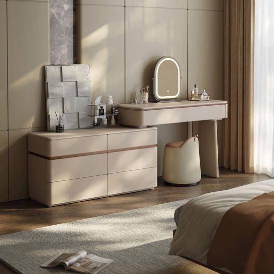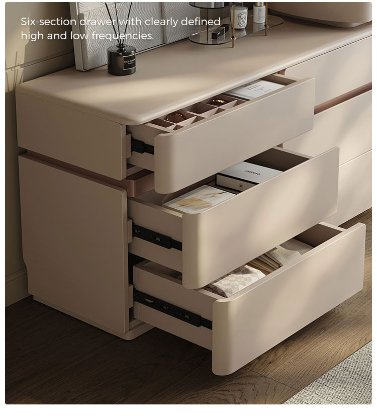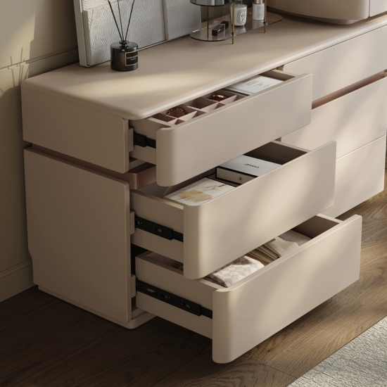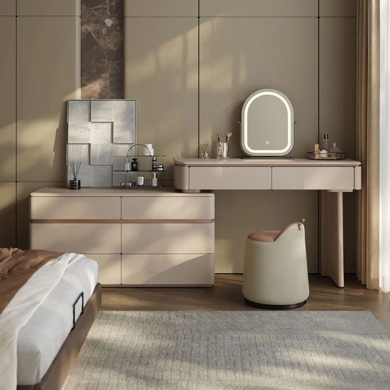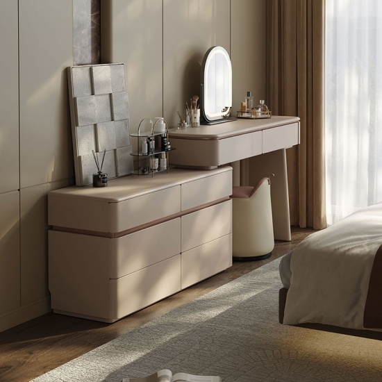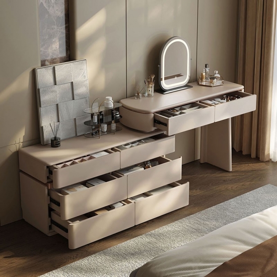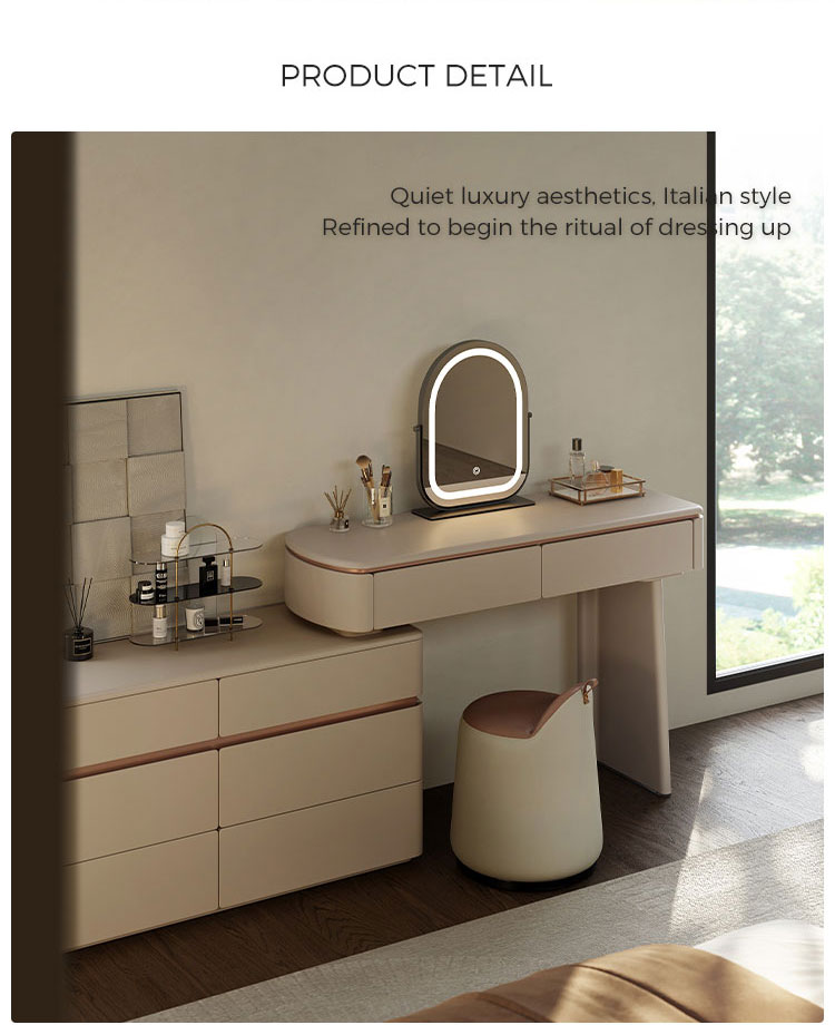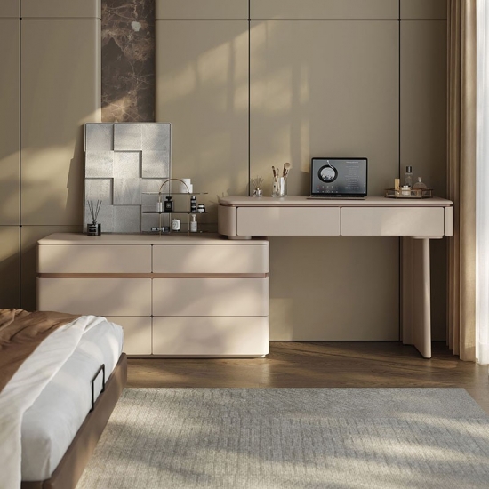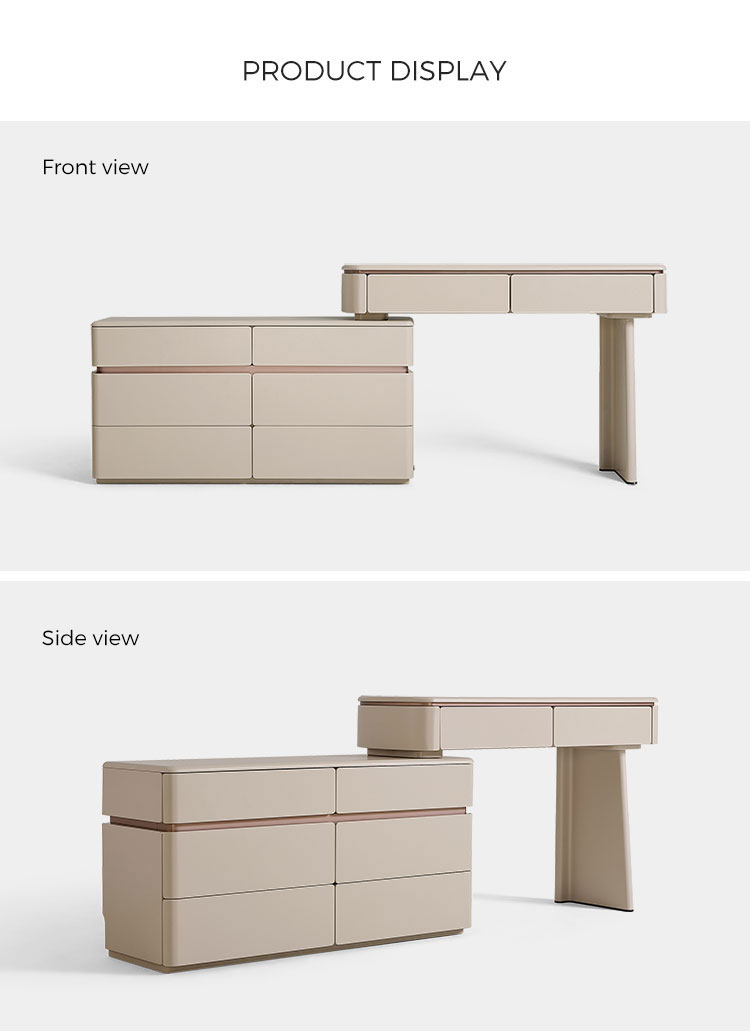 Realza la estética de tu dormitorio con una pieza que combina la elegancia italiana atemporal con un diseño ingenioso y que optimiza el espacio. Nuestro tocador extensible de estilo italiano no es solo un mueble: es una declaración de sofisticación y una solución para el hogar moderno. Diseñado para quienes aprecian la belleza y la practicidad a partes iguales, este mueble se transforma a la perfección de una elegante cómoda de seis cajones a un rincón de decoración personal.