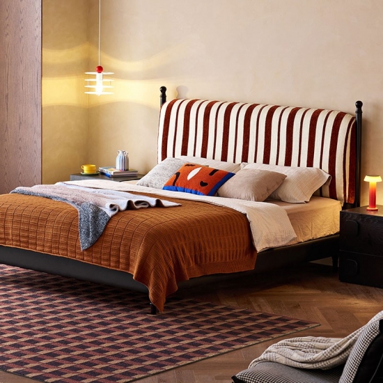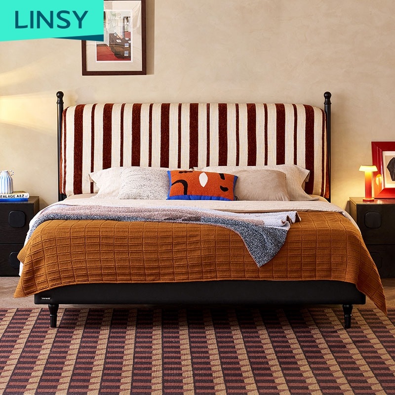 7Cama moderna de tela con diseño de garra de gato color burdeos LINSY BC502-A