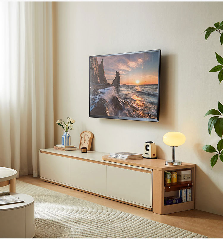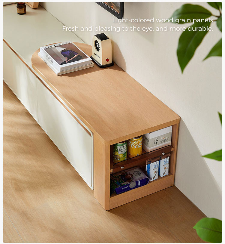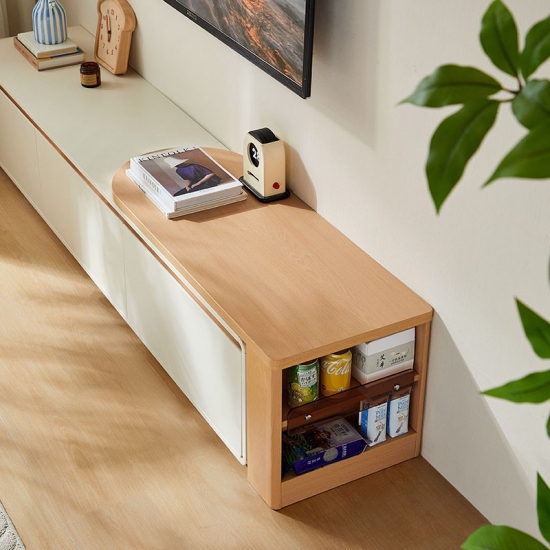 El suave mecanismo telescópico permite ajustar el ancho fácilmente, ofreciendo un estilo flexible para cualquier distribución de la habitación. El sistema de gestión de cables integrado y los amplios compartimentos de almacenamiento mantienen los dispositivos multimedia organizados y ocultos. Ya sea para un apartamento pequeño o un salón espacioso, esta consola se adapta a tus necesidades: elegante, práctica y siempre proporcionada.