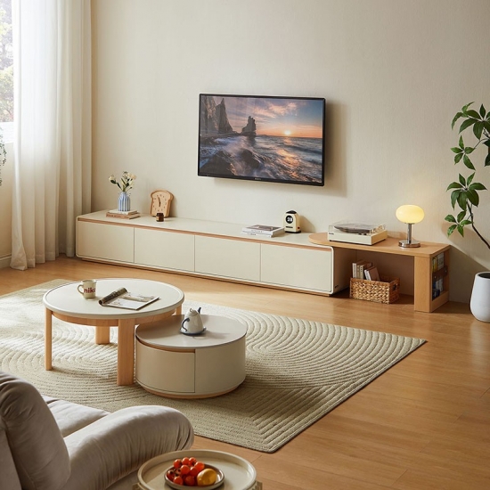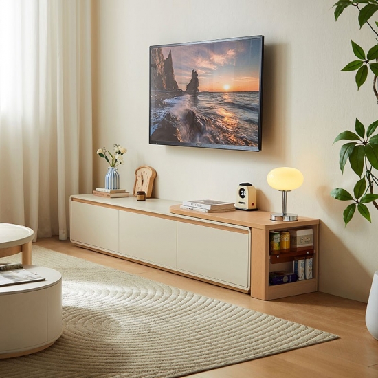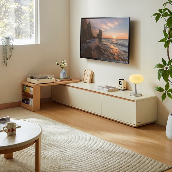 Diseñada para la vida moderna, esta consola de TV blanca LINSY presenta un diseño modular inteligente que se extiende para adaptarse a su espacio y al tamaño de la pantalla. Con líneas limpias y un acabado blanco duradero, combina a la perfección minimalismo y funcionalidad.