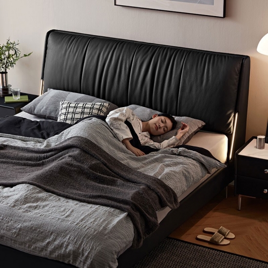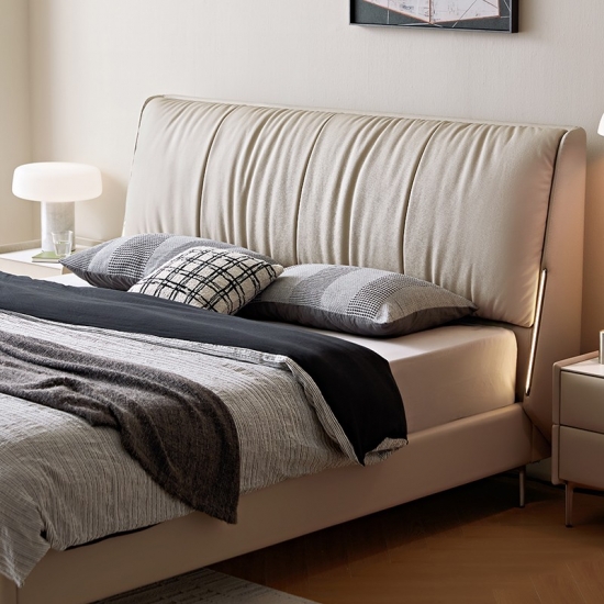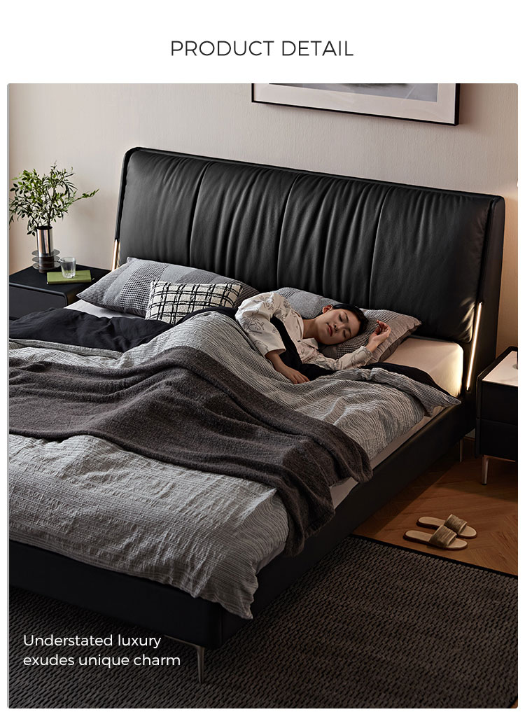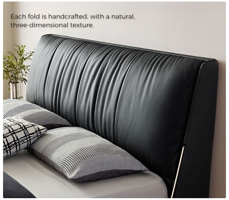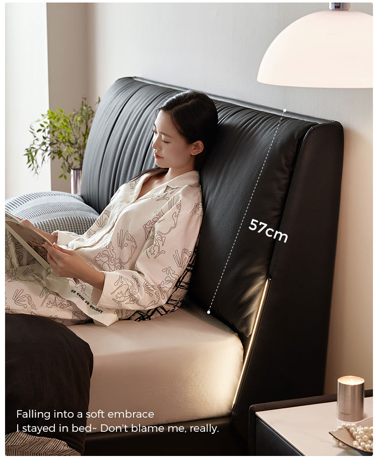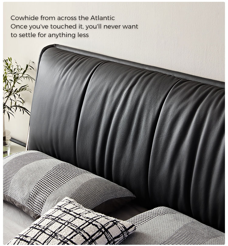 La cabecera de cuero suave de grano completo ofrece una comodidad lujosa para leer o relajarse, con costuras a medida para un acabado de alta gama sin costuras.