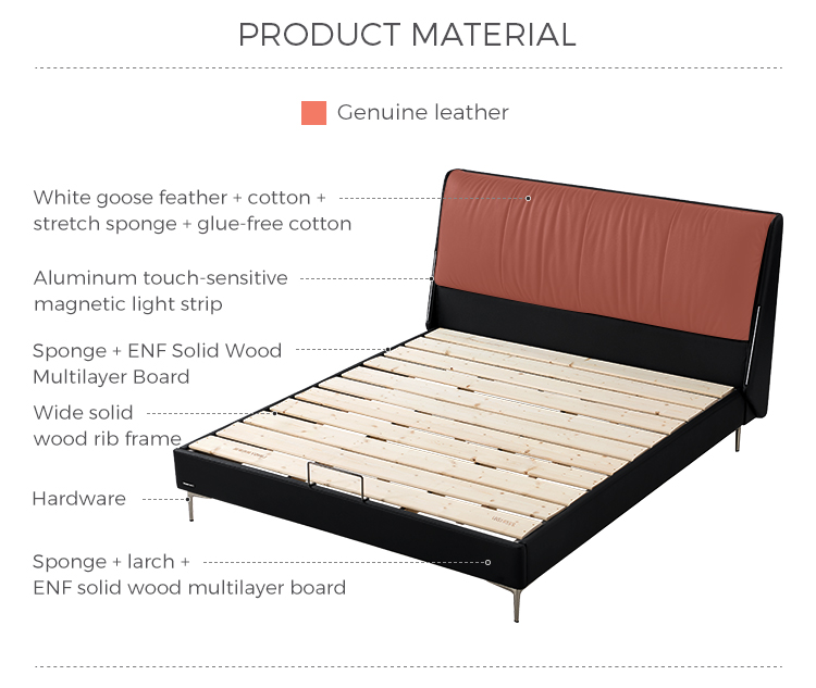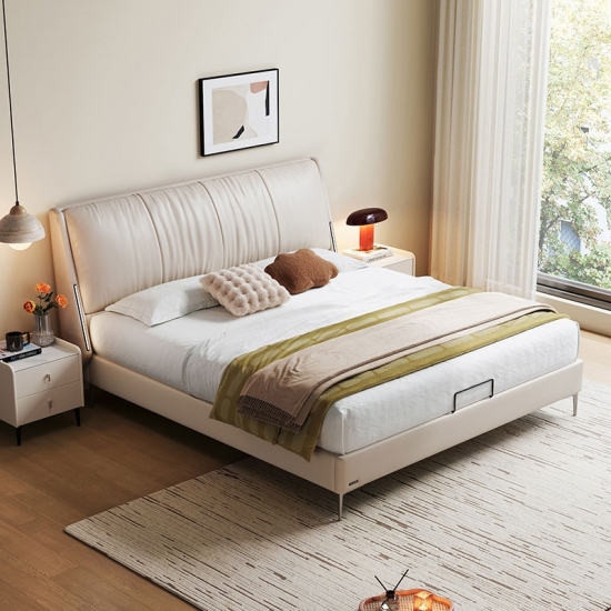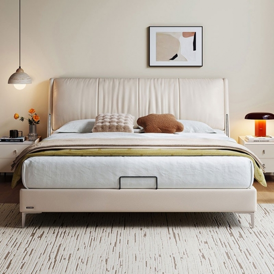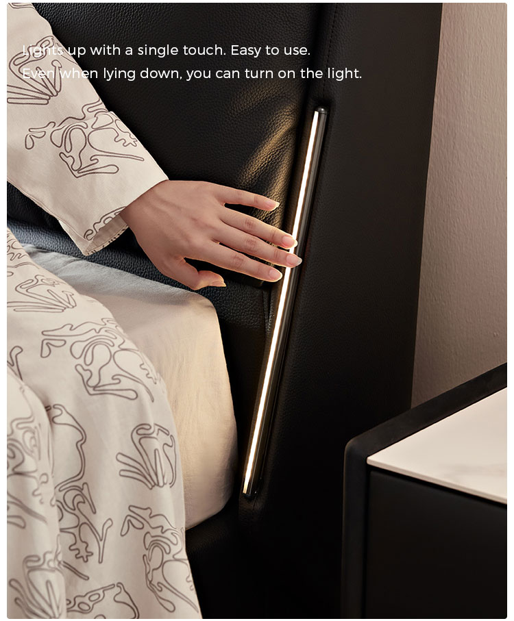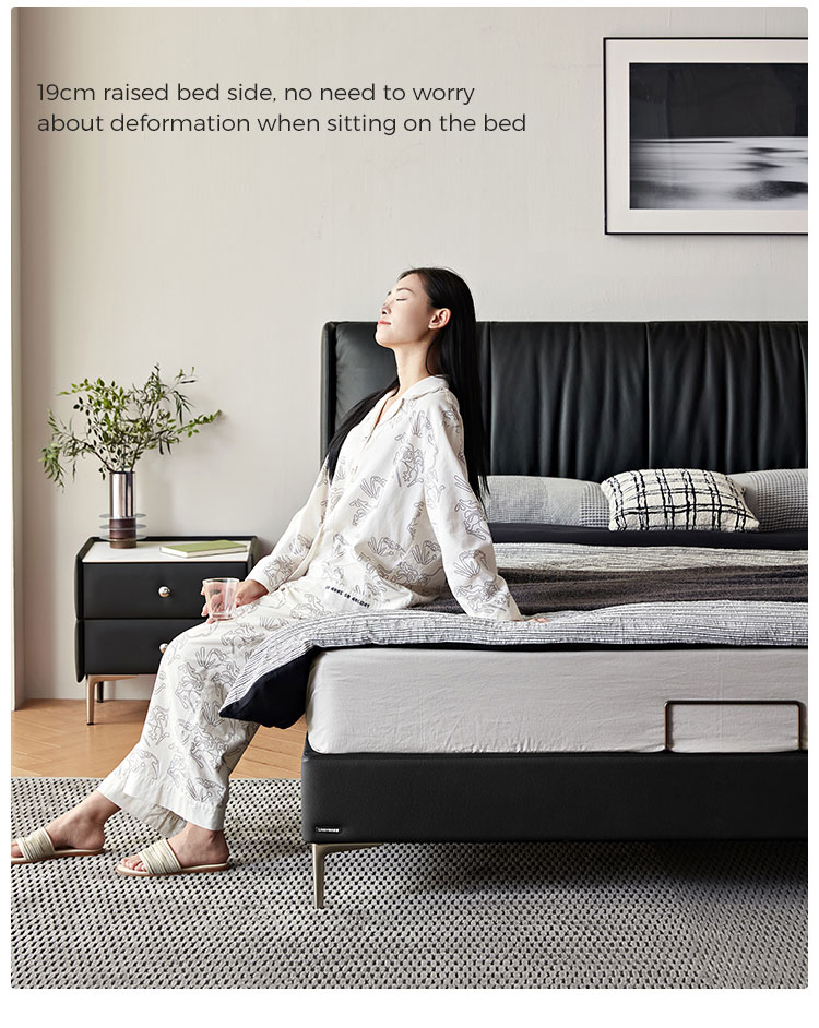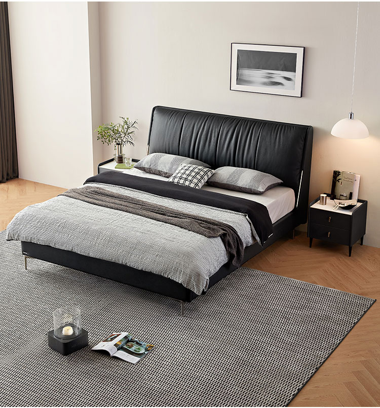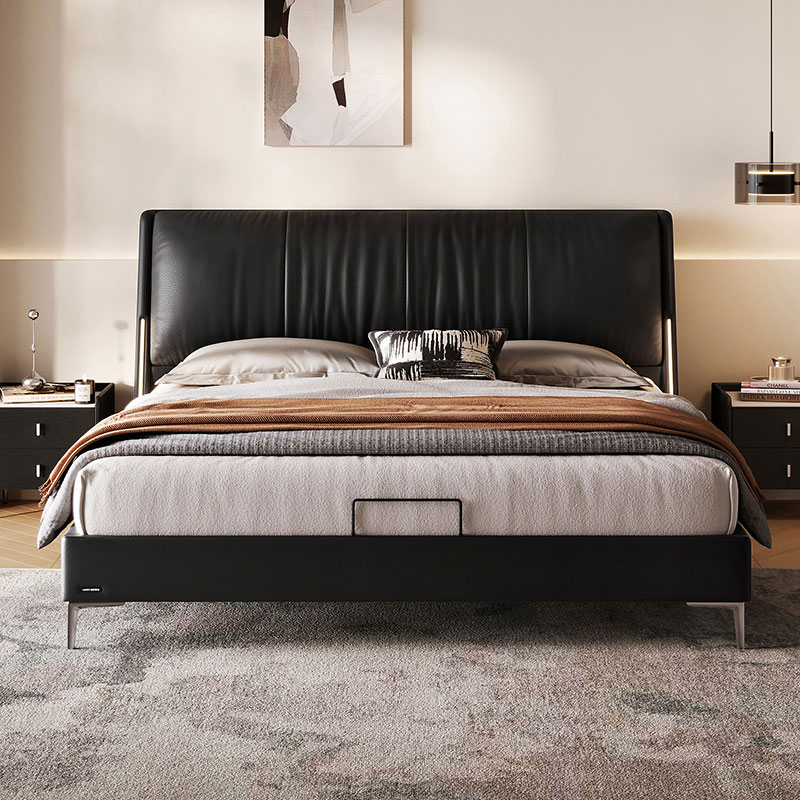 La cabecera de cuero suave de grano completo ofrece una comodidad lujosa para leer o relajarse, con costuras a medida para un acabado de alta gama sin costuras.