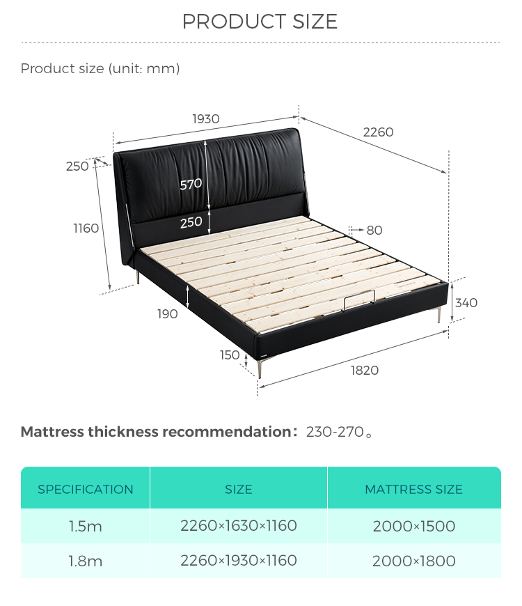 Disponible en tamaños Queen (1,5 m) y King (1,8 m), diseñado para adaptarse sin esfuerzo a dormitorios principales y suites de invitados.