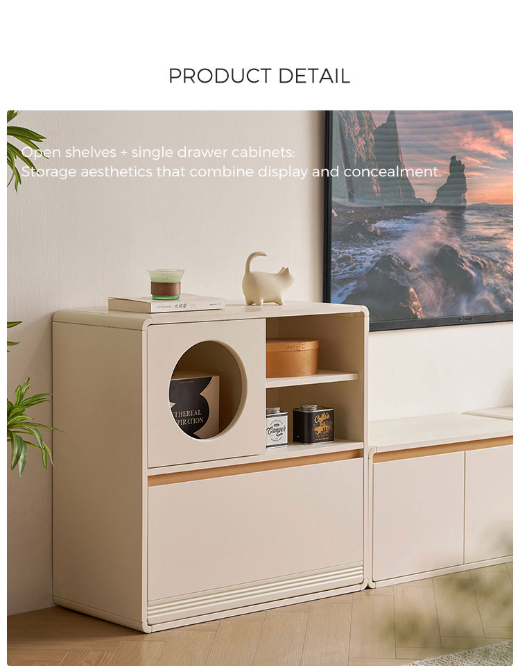 Diseño funcional: diseñado para ser versátil, proporciona un amplio espacio de almacenamiento oculto detrás de puertas y cajones que encajan perfectamente.