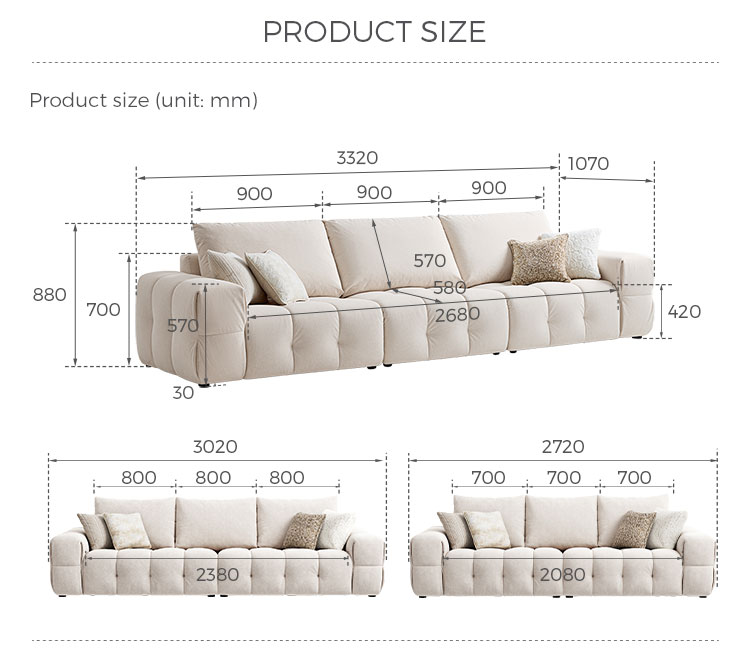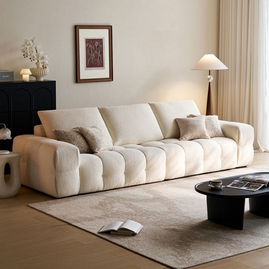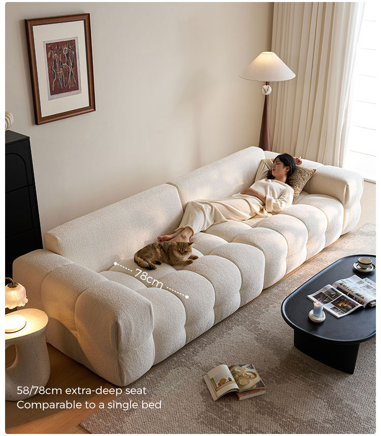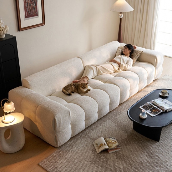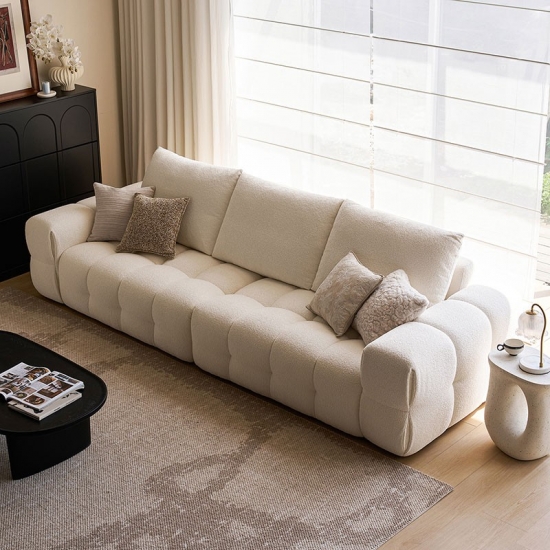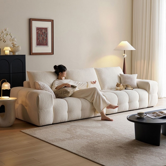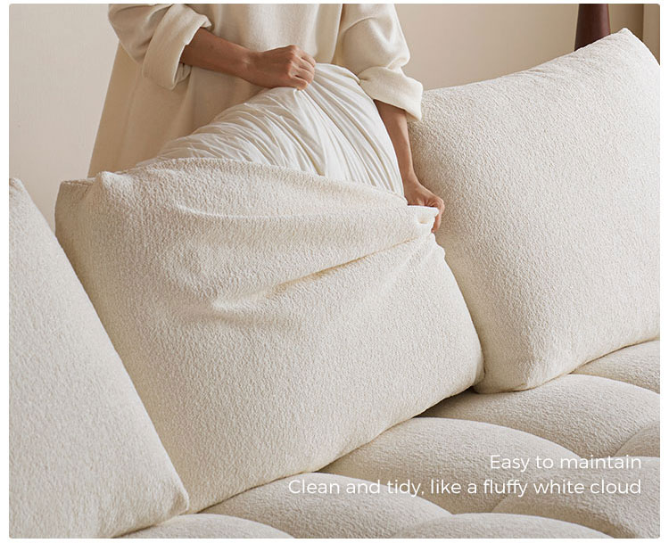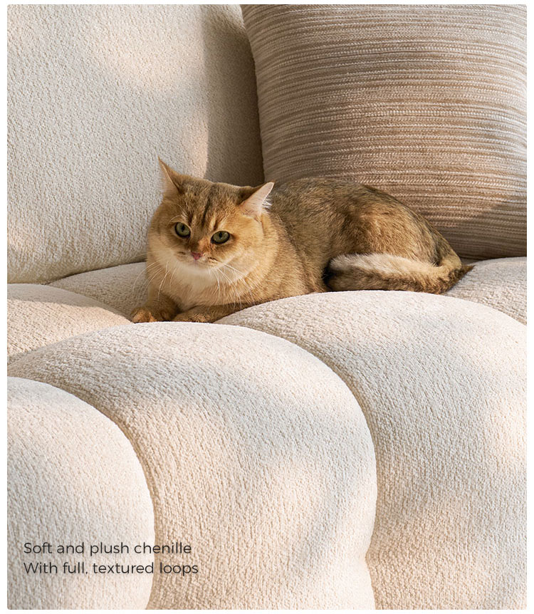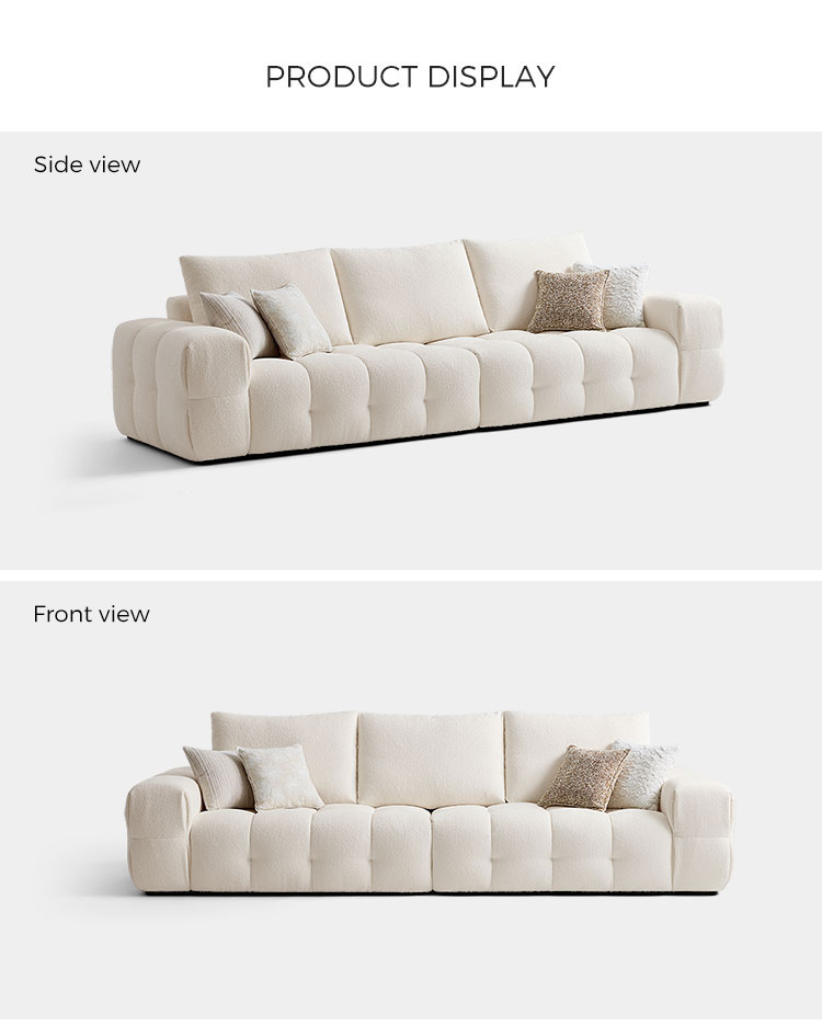 Presentamos la pieza central de la vida moderna: nuestro impecable sofá de tela blanca. Inspirado en las líneas limpias y la elegancia rítmica de la forma de tofu, este sofá combina un diseño minimalista con una comodidad profunda y acogedora. No es solo un mueble; es una declaración de estilo sereno y contemporáneo.