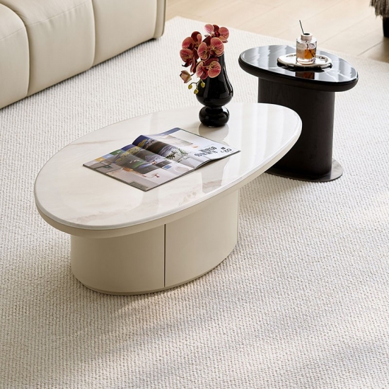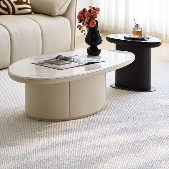 7Mesa de centro baja irregular blanca moderna LINSY YU2L-A