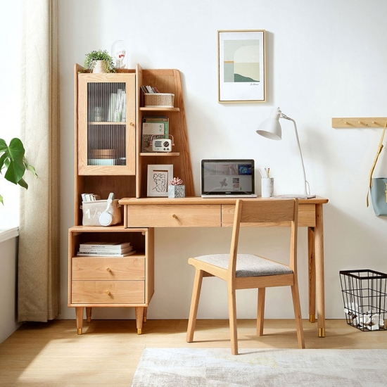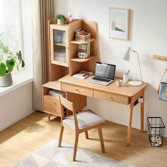 Escritorio resistente de madera maciza de estilo nórdico LINSY con estante JU1V-A