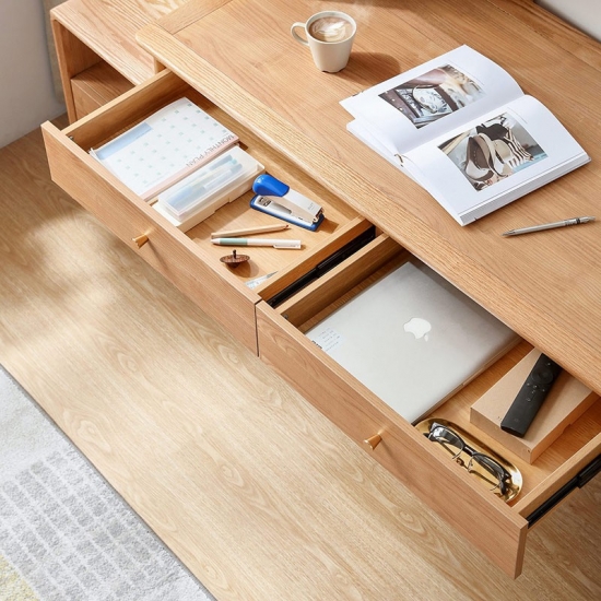 Fabricado con madera maciza 100 % de primera calidad, este elegante escritorio combina durabilidad, belleza natural y diseño funcional para realzar su oficina o estudio en casa. Cada pieza luce la veta única y la calidez de la madera auténtica, garantizando un espacio de trabajo resistente y duradero para trabajar, estudiar o disfrutar de sus actividades creativas.