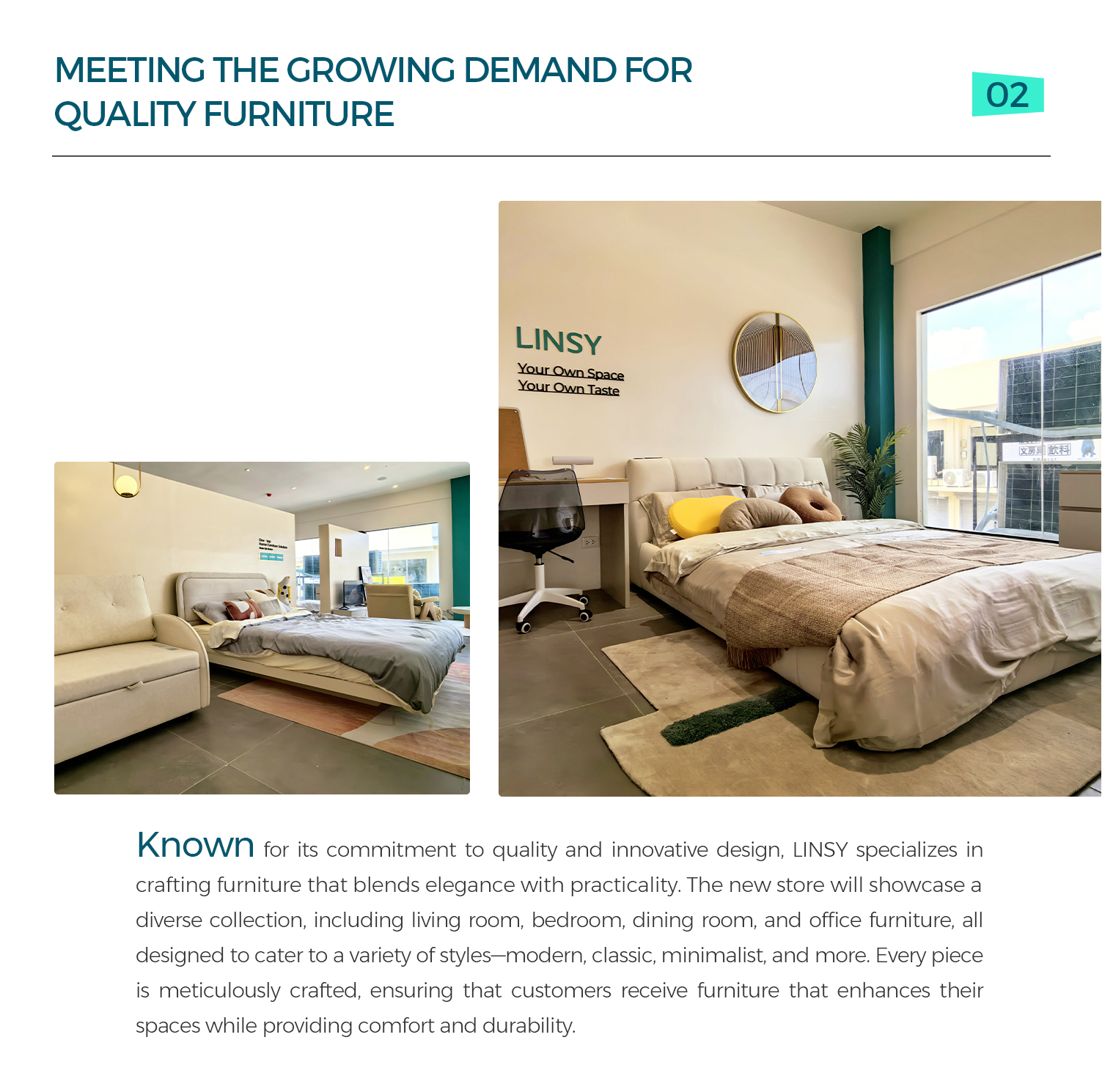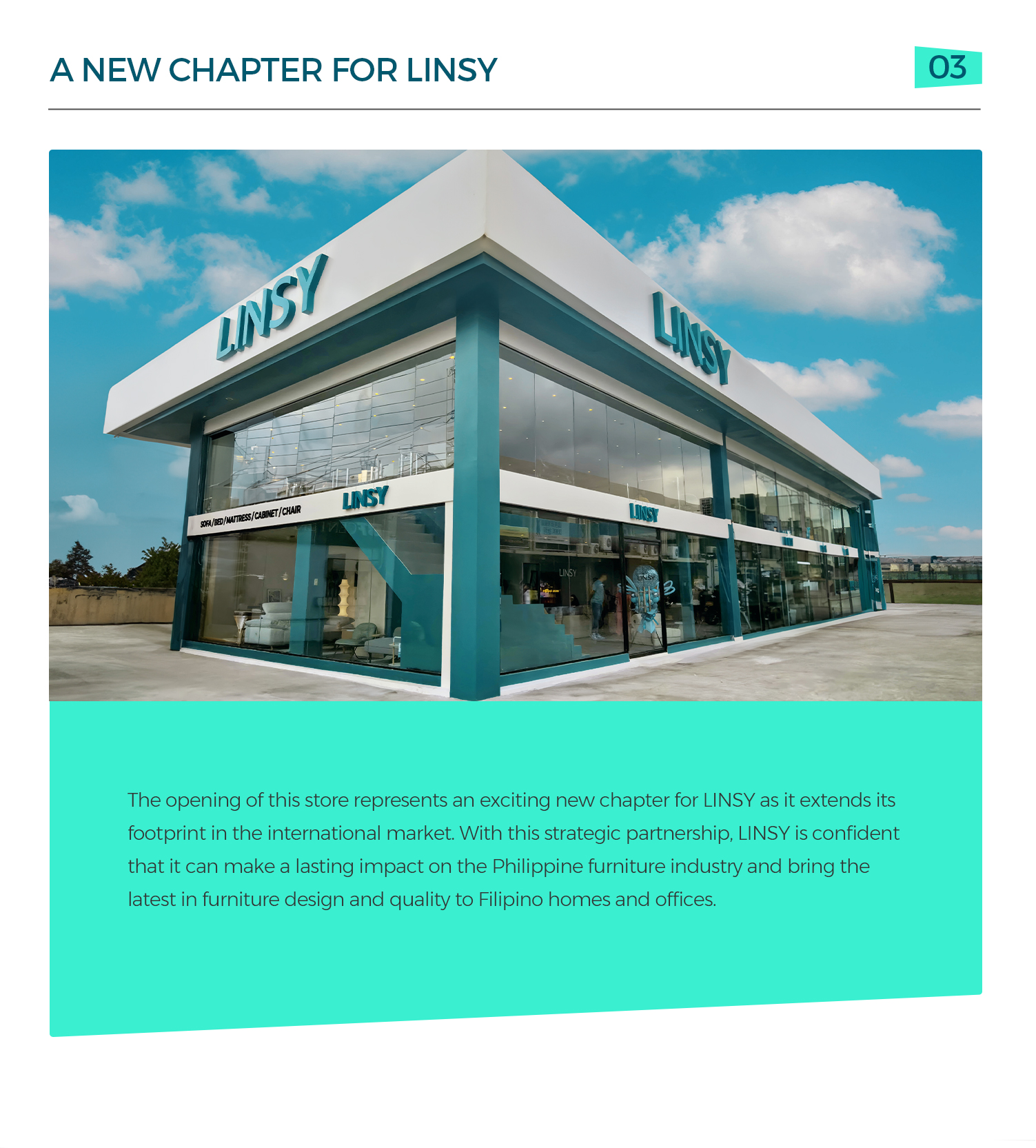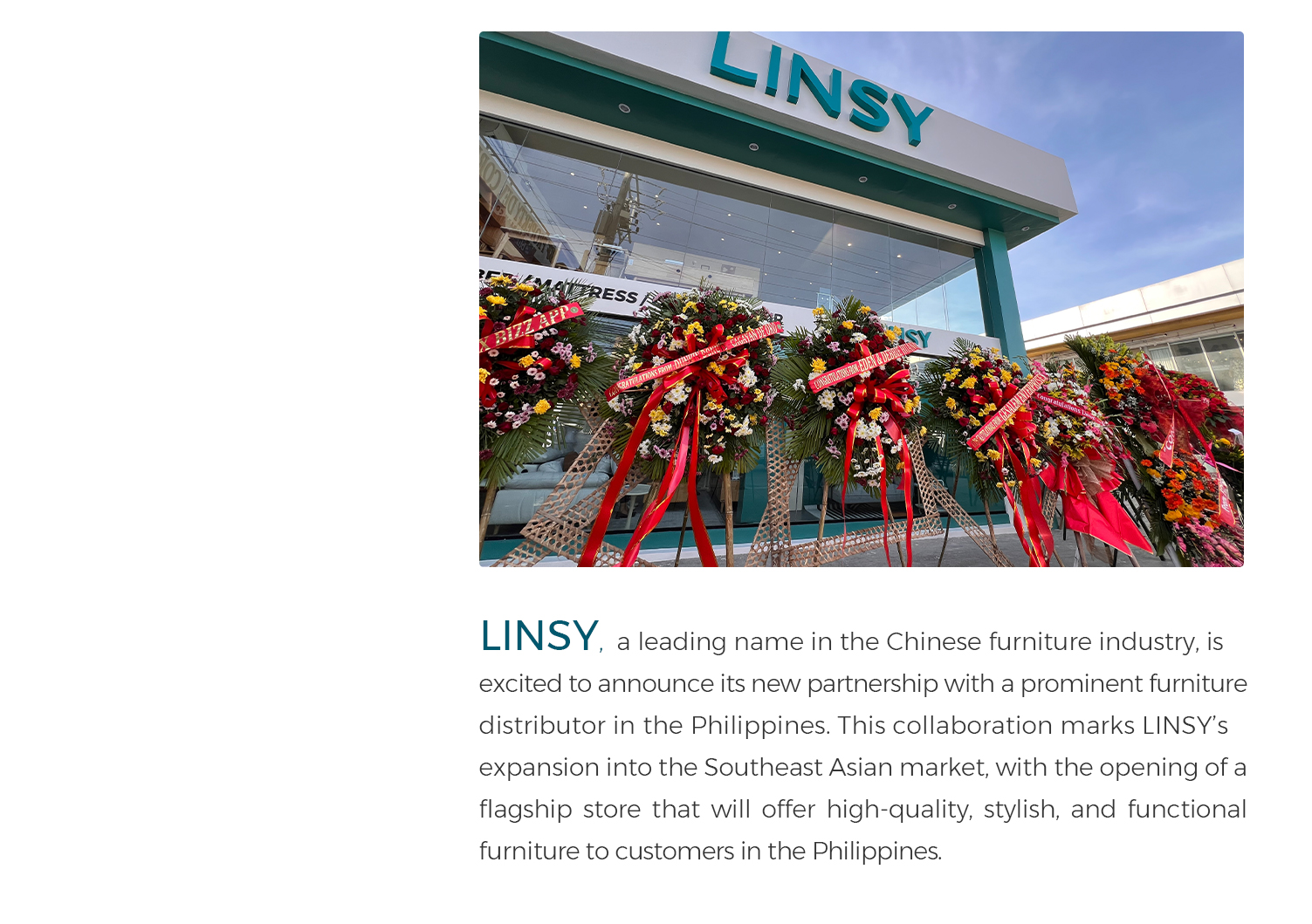 LINSY, un nombre líder en la industria del mueble china, se complace en anunciar su nueva asociación con un destacado distribuidor de muebles en Filipinas. Esta colaboración marca la expansión de LINSY en el mercado del Sudeste Asiático, con la apertura de una tienda insignia que ofrecerá muebles de alta calidad, elegantes y funcionales a los clientes de Filipinas.