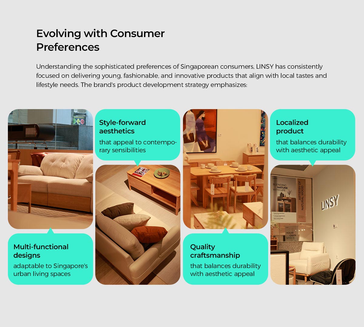 Desde su ingreso inicial al mercado de Singapur en 2019, LINSY ha entregado constantemente muebles para el hogar de alta calidad adaptados a las preferencias locales, obteniendo comentarios positivos del mercado y construyendo una base de clientes leales.