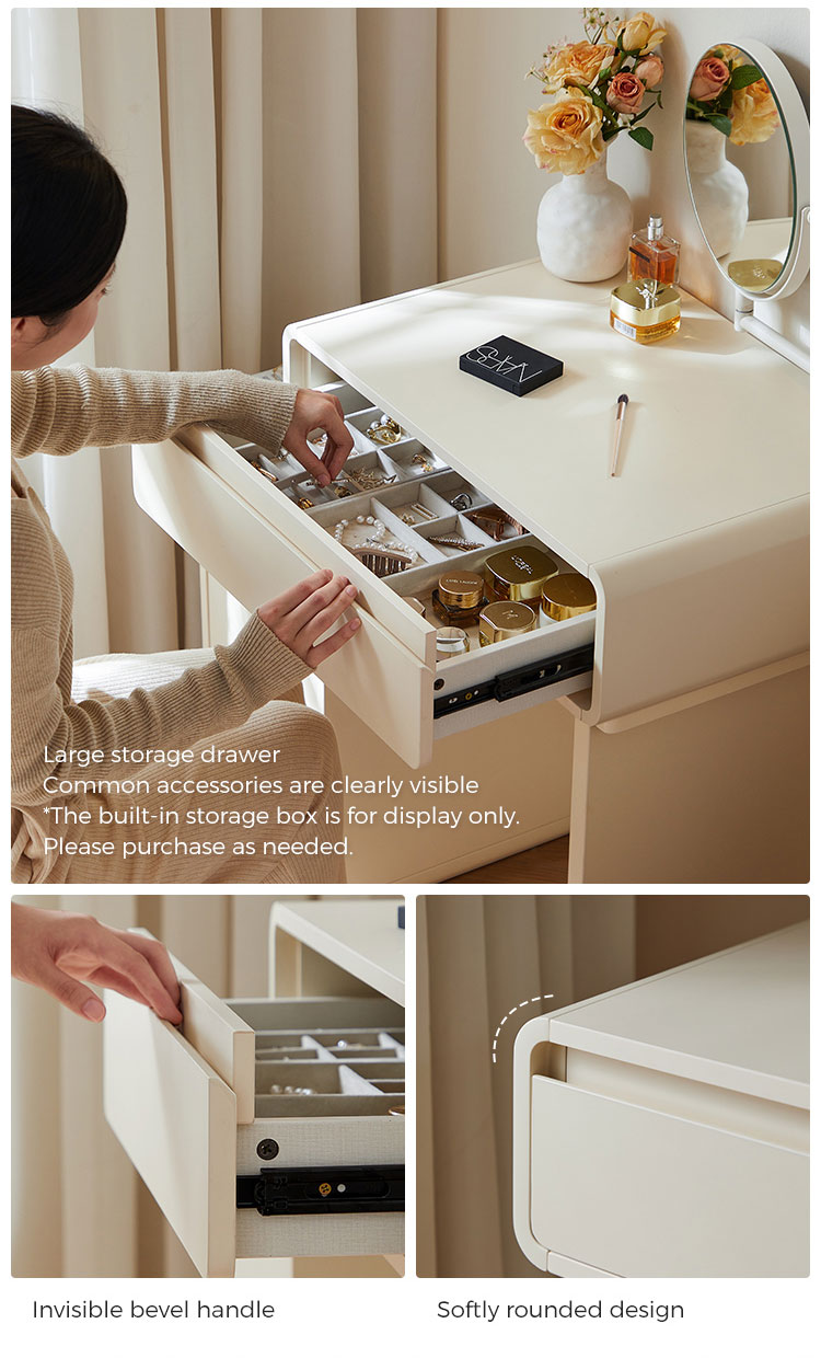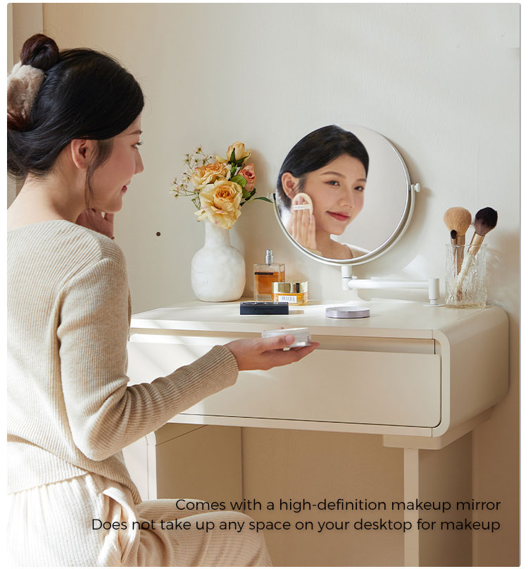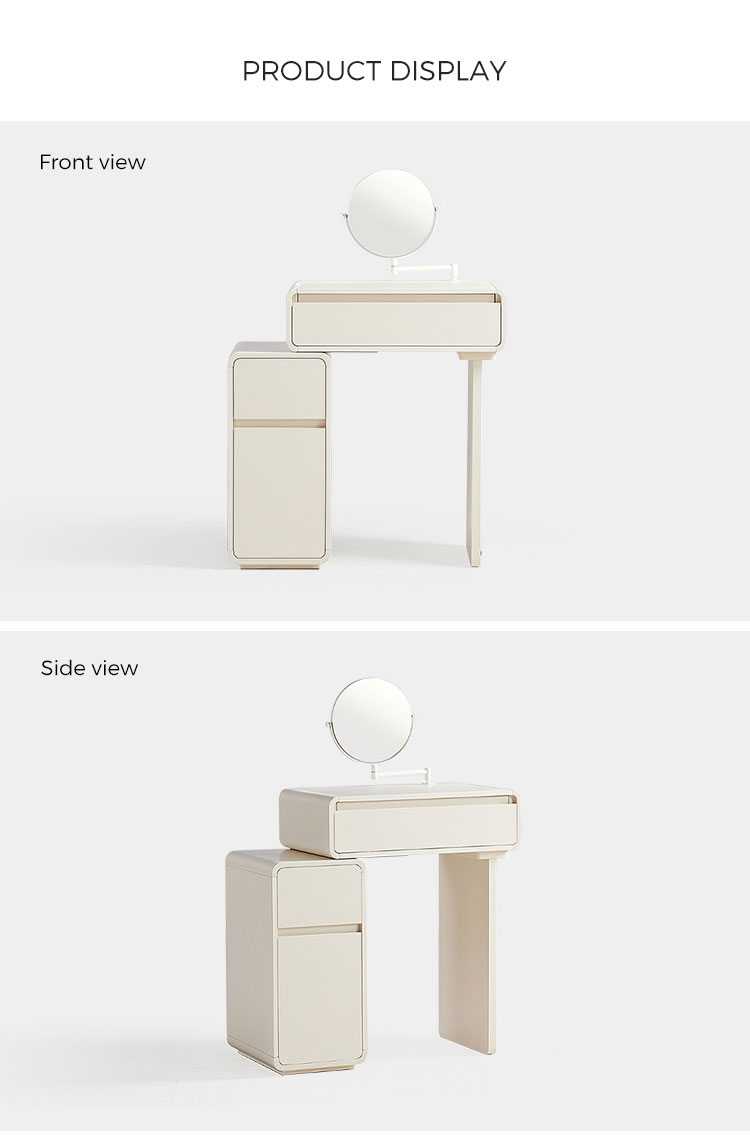 Diseñado para la vida moderna, este elegante tocador blanco combina estilo y funcionalidad. Su diseño compacto maximiza el almacenamiento, manteniendo una estética limpia y minimalista. Con múltiples compartimentos, cajones y organizadores, mantiene tus artículos de belleza perfectamente organizados. Perfecto para espacios pequeños, este tocador ofrece una solución práctica y elegante para tu rutina diaria.