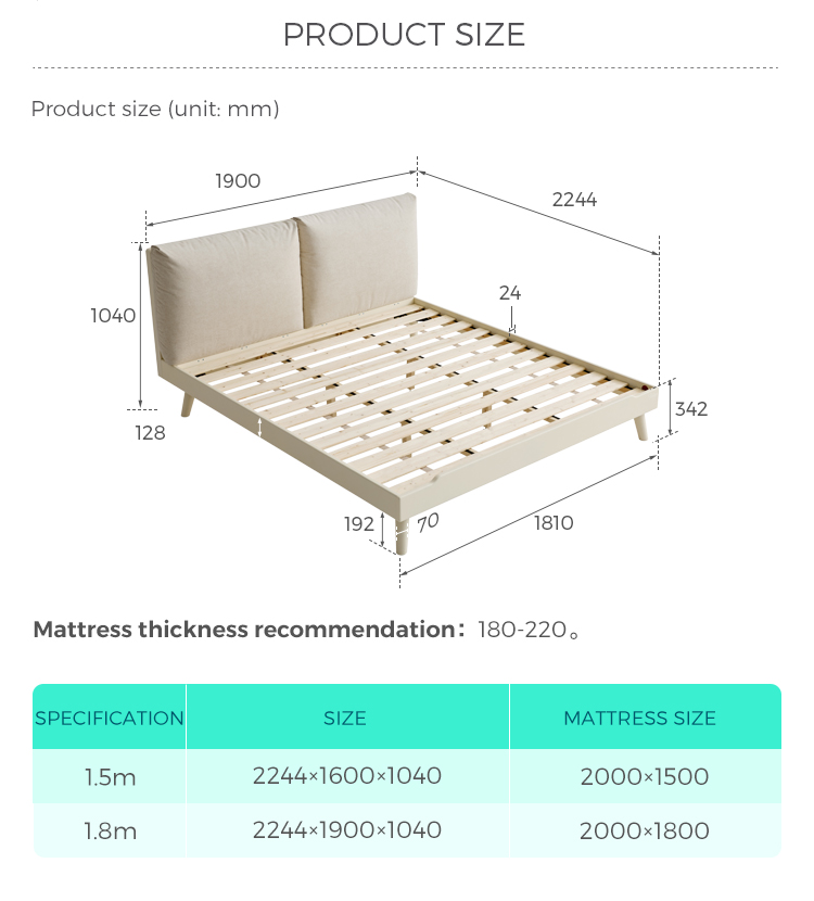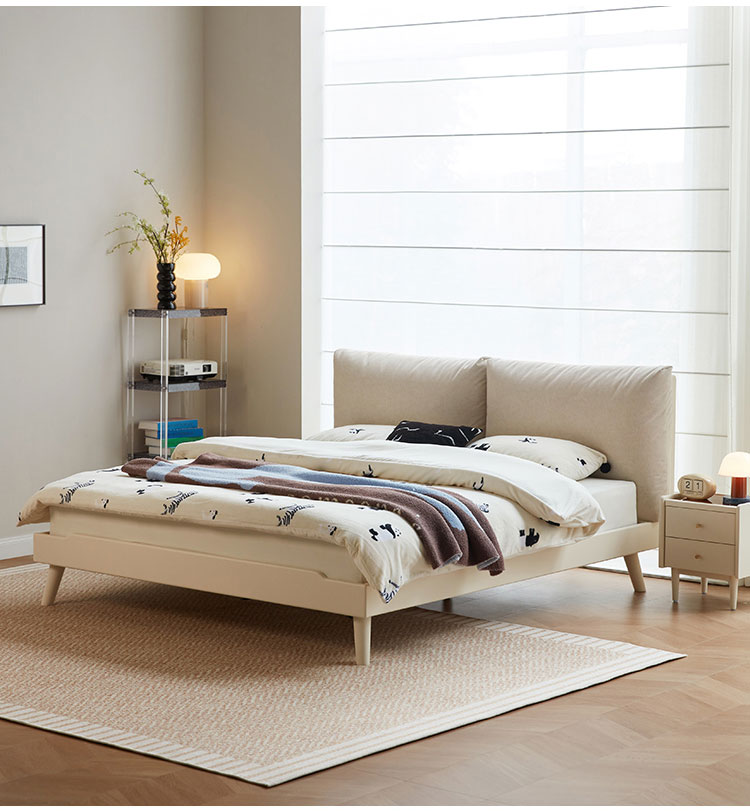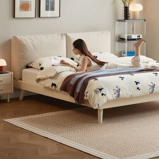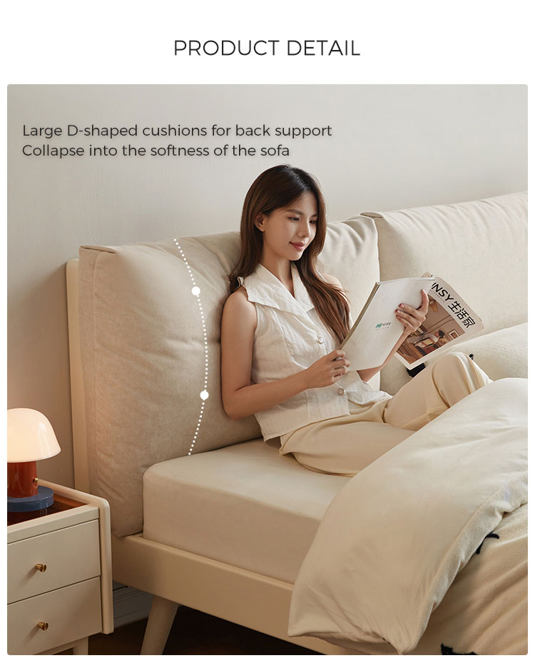 7Cama LINSY tapizada en cuero de gasa suave con estructura de madera maciza LH094A7-A