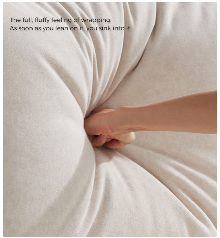 1. Grandes cojines en forma de D para apoyar la espalda. Se desploman en la suavidad del sofá.