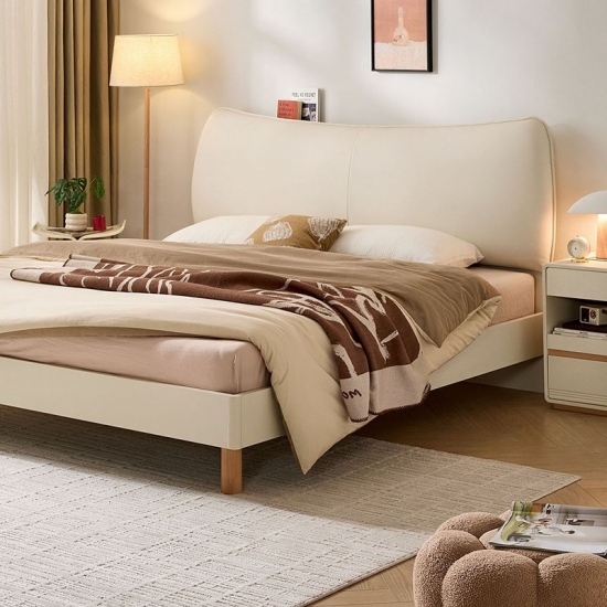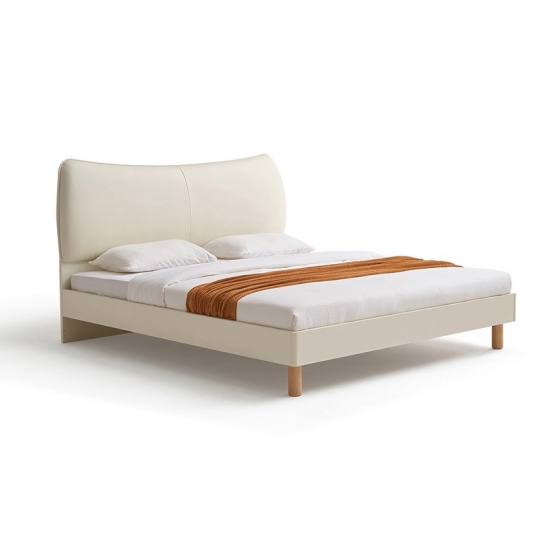 Cama tapizada blanca LINSY con cabecero de cuero UD10A-A |