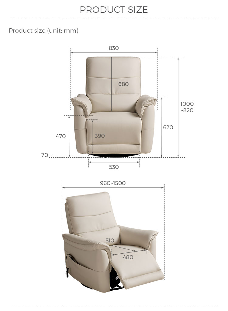 Diseñado tanto para el estilo como para la sustancia, este sillón reclinable presenta suntuoso cuero de grano superior En un tono blanco cálido único que resiste la frialdad, creando una atmósfera acogedora y aireada. Asiento acolchado profundo y respaldo alto Están diseñados ergonómicamente para brindar soporte a todo el cuerpo, perfectos para leer, trabajar o simplemente relajarse durante un tiempo prolongado.