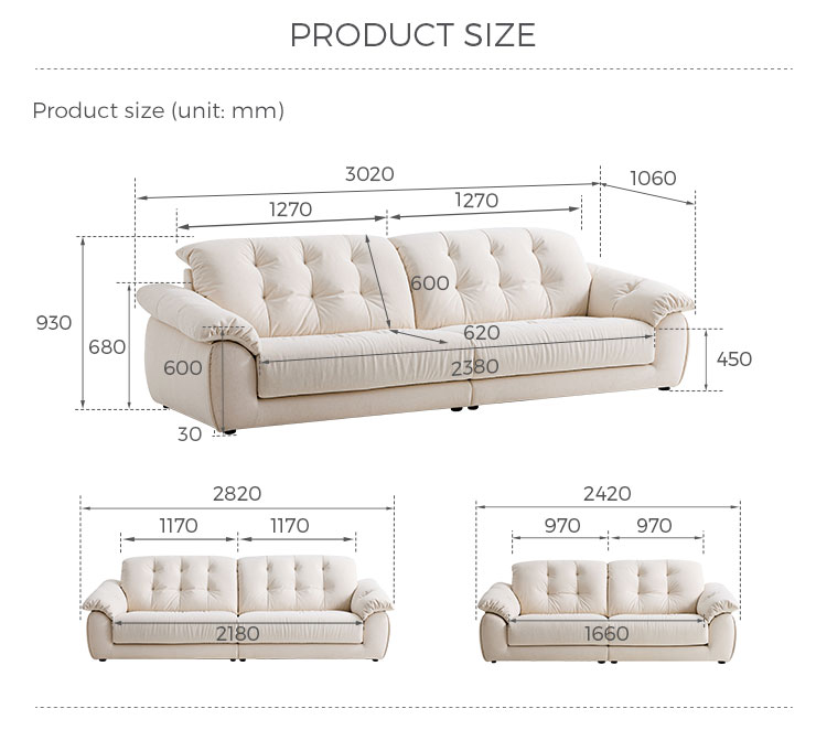 | Nombre del producto | Sofá moderno de 3 plazas resistente a los arañazos en color blanco crema BS815-B |