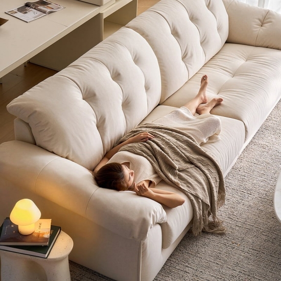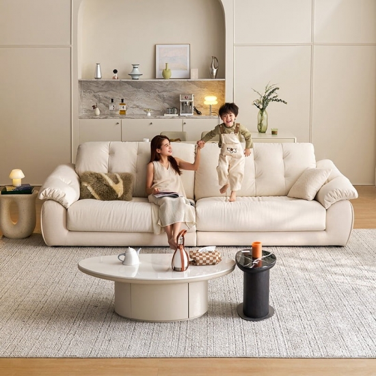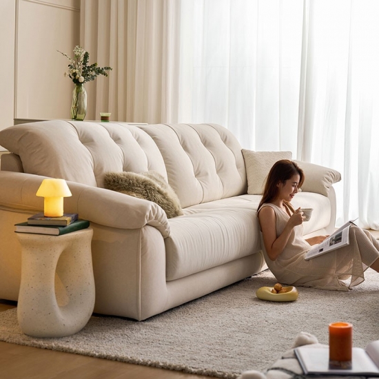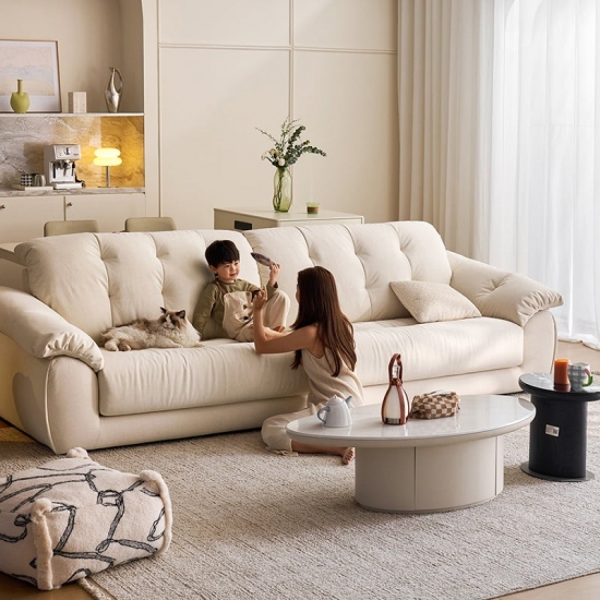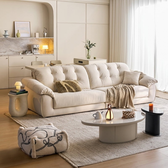 7Sofá moderno de 3 plazas resistente a los arañazos en color blanco crema BS815-B