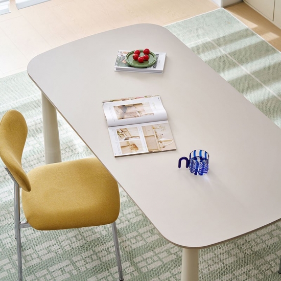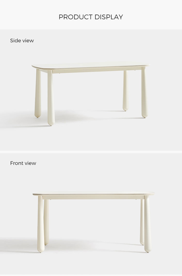Reúnase con estilo en esta elegante mesa de comedor. Con un suave acabado en blanco crema y una amplia forma rectangular, está diseñada para la vida moderna. Puede utilizarse tanto en una casa como en un hotel.