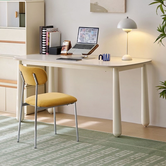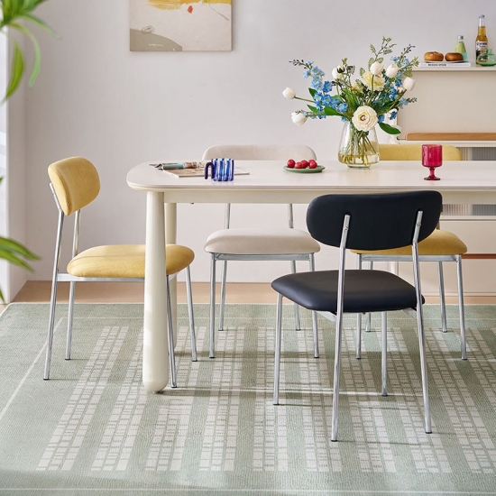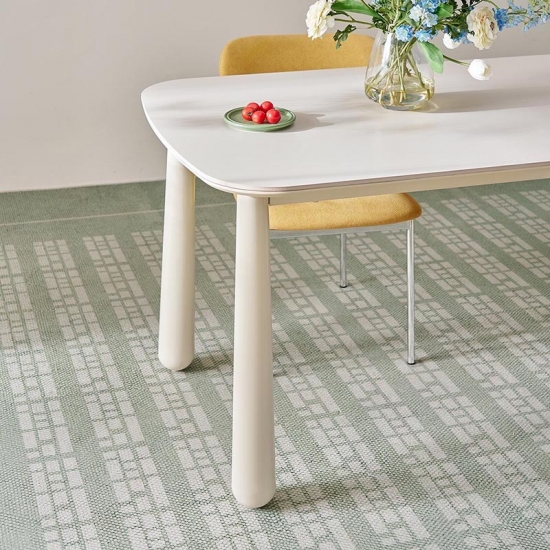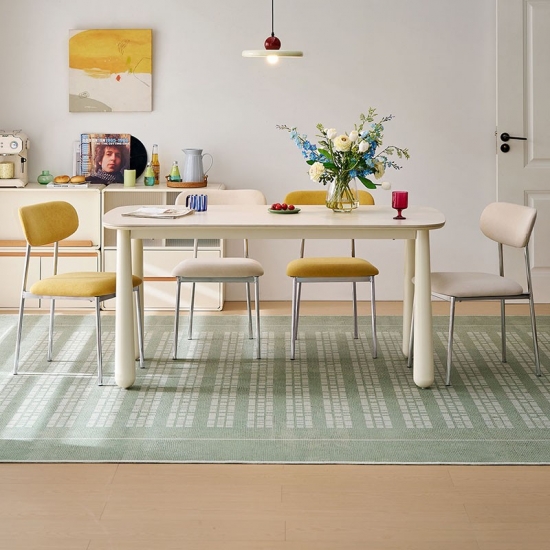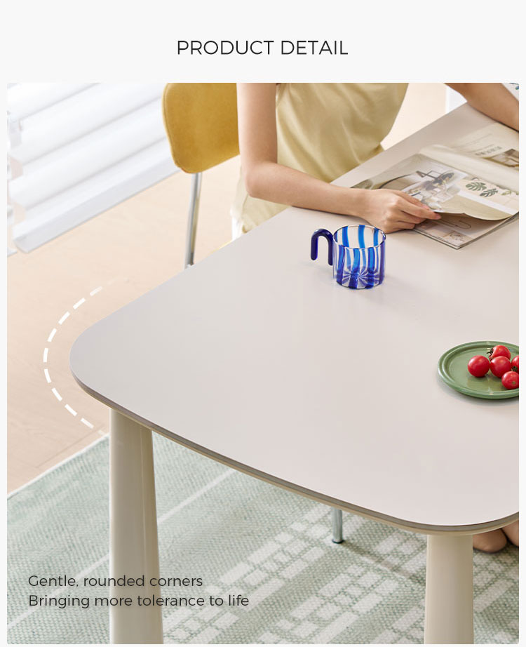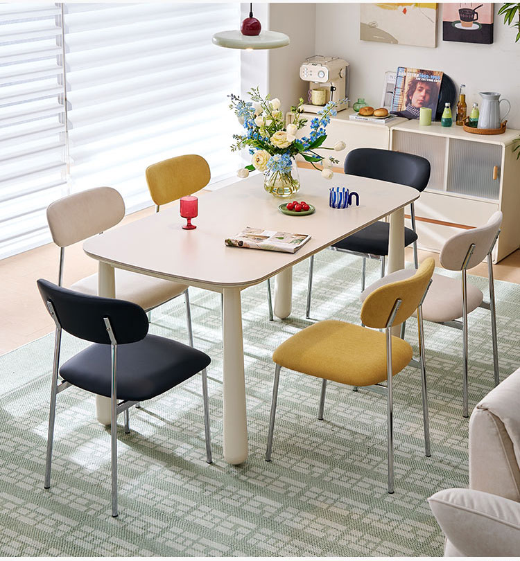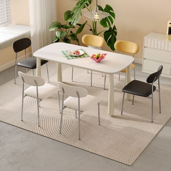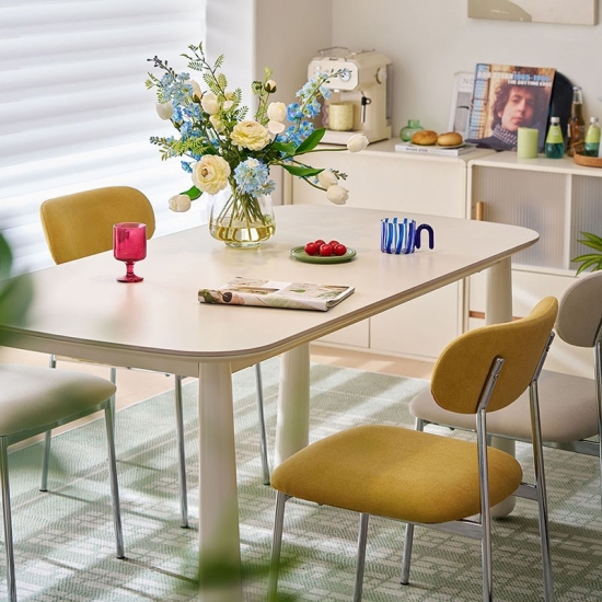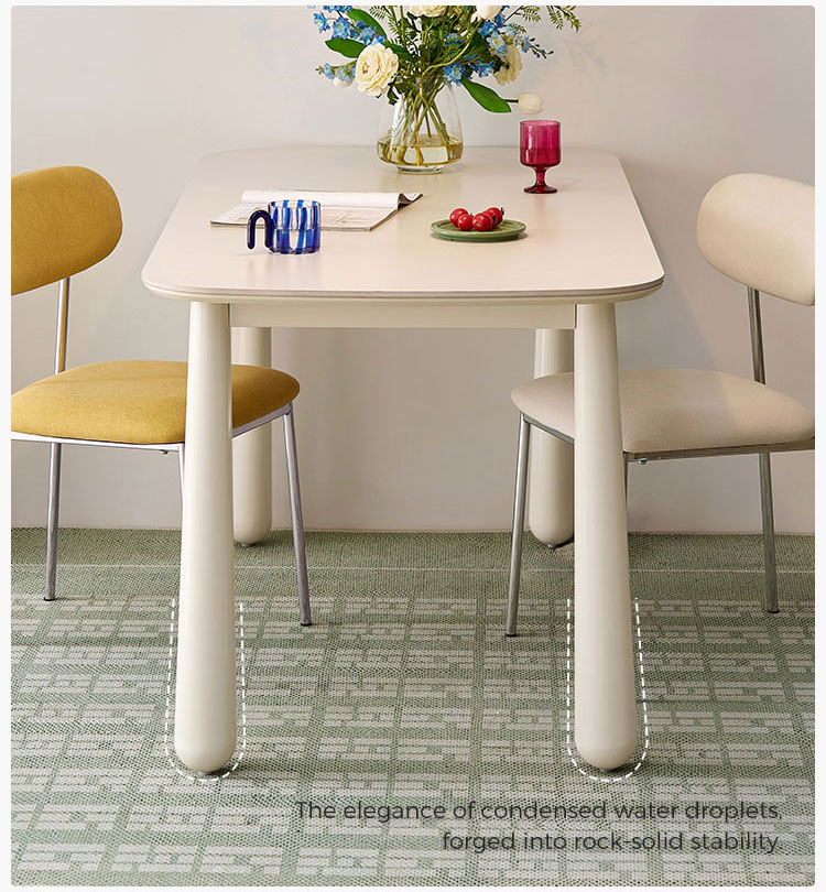 7Mesa de comedor moderna de color blanco crema con tablero de piedra sinterizada duradera TN5R-A