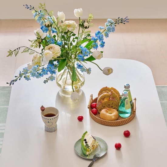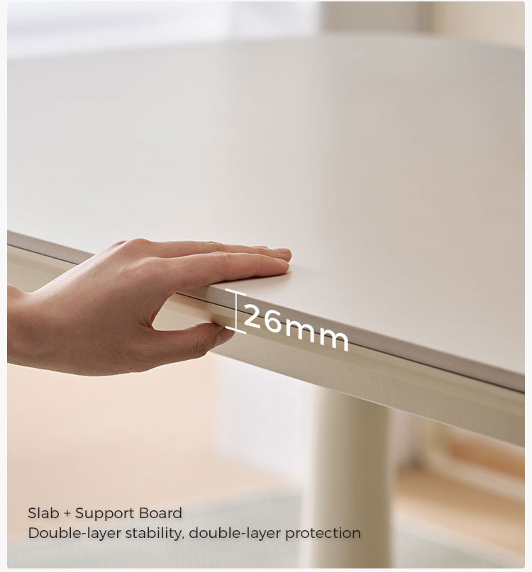 Mesa de comedor moderna de color blanco crema con tablero de piedra sinterizada duradera TN5R-A |
