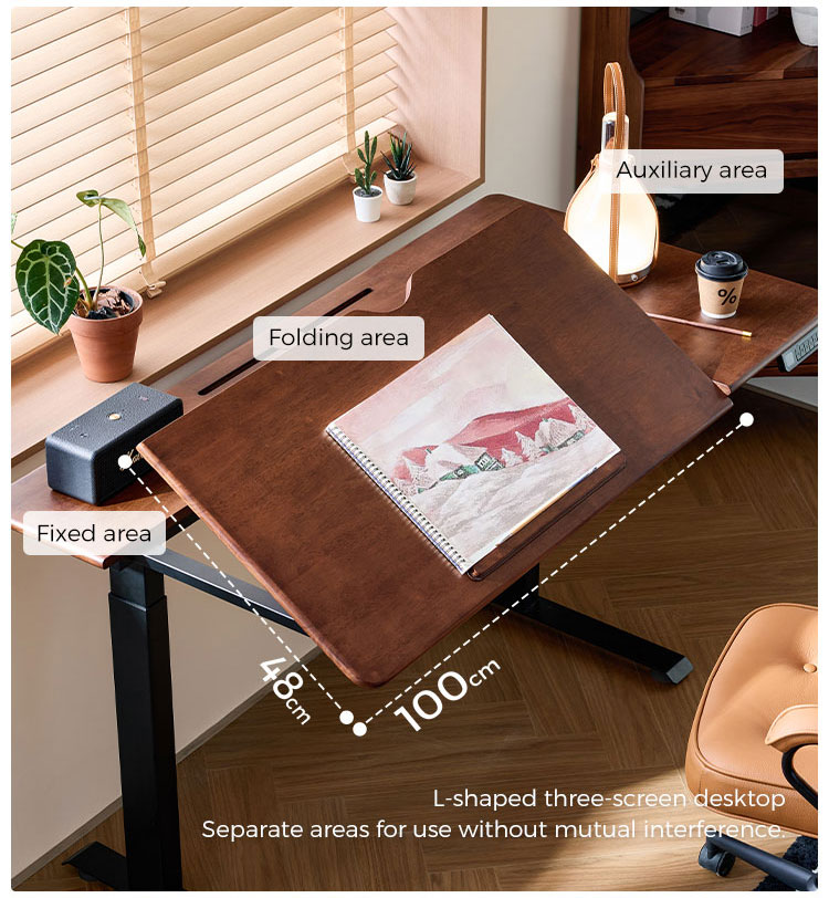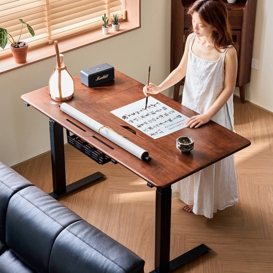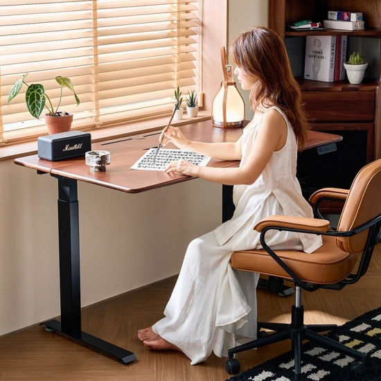 Experimenta una flexibilidad sin esfuerzo con nuestro escritorio eléctrico de altura regulable. Ajusta fácilmente la altura de tu espacio de trabajo con el silencioso motor de este escritorio. Su cálido acabado en nogal aporta una elegancia natural y sofisticada a cualquier habitación, favoreciendo la comodidad y la productividad durante todo el día.