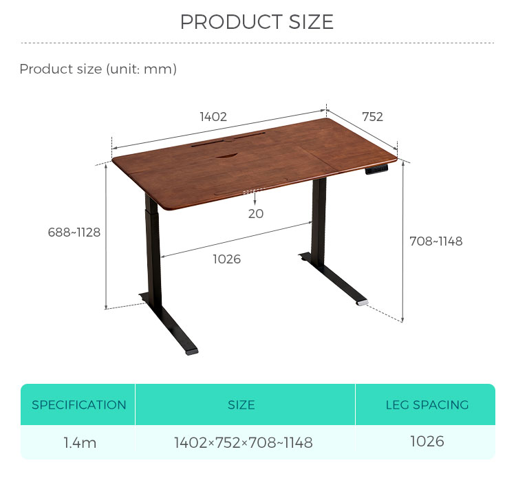 7Escritorio de pie moderno eléctrico de altura regulable en nogal BG099-D