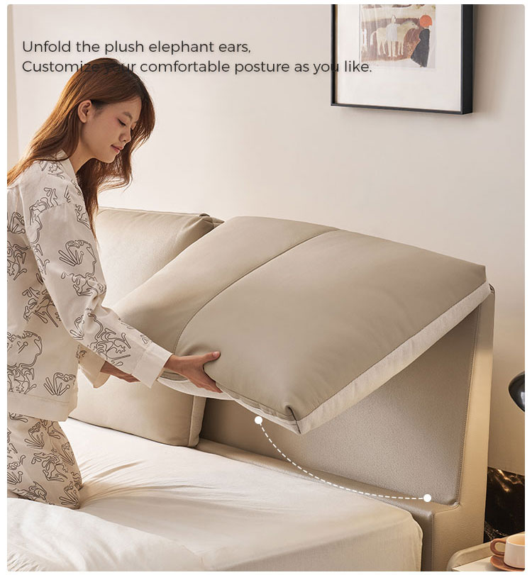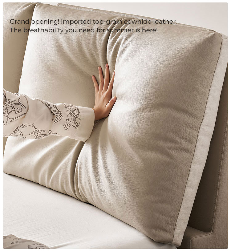 Eleve su dormitorio con LINSY Cama de cuero beige suave Donde el lujo se fusiona con el diseño contemporáneo. Fabricado en suave cuero beige de primera calidad, este cabecero ofrece un tacto suave y aterciopelado que aporta calidez y sofisticación instantáneas a cualquier dormitorio moderno.