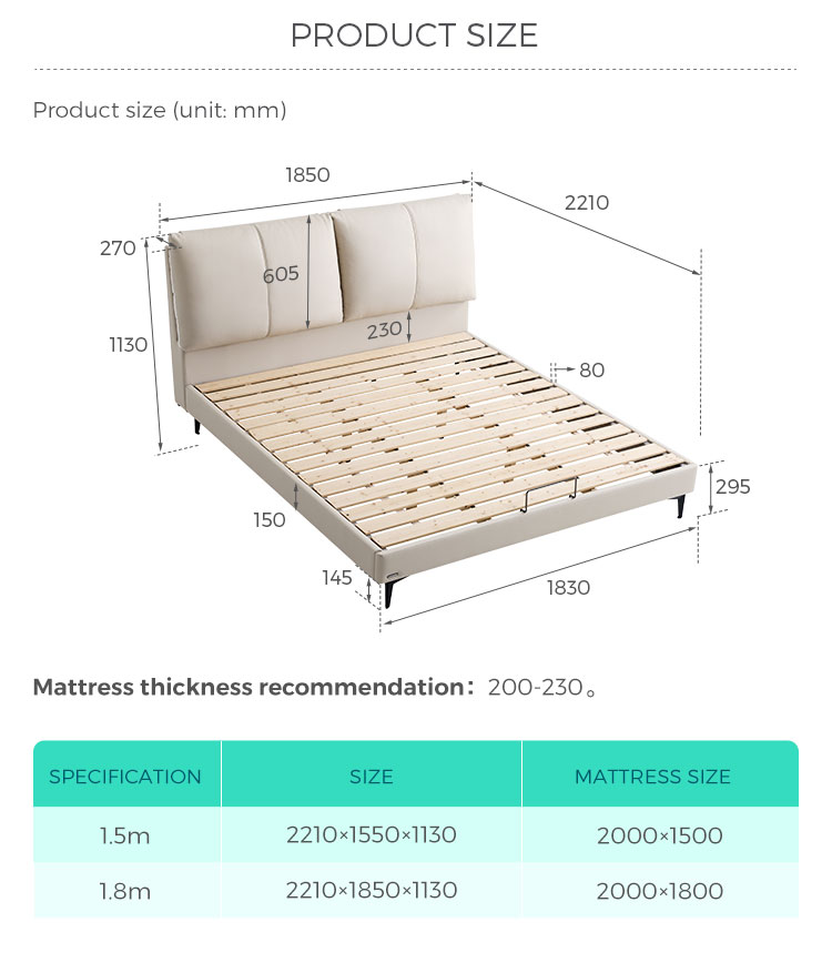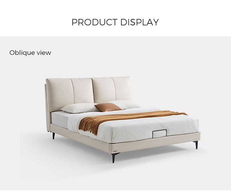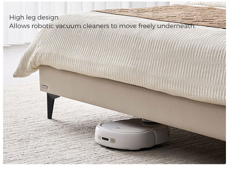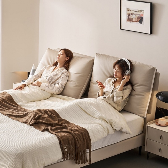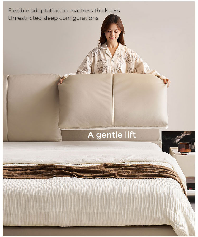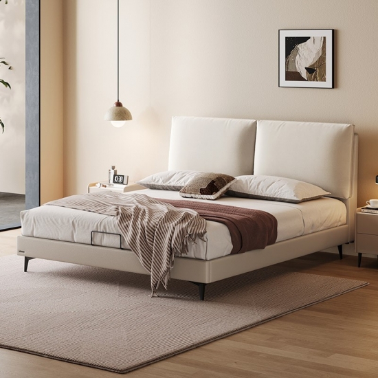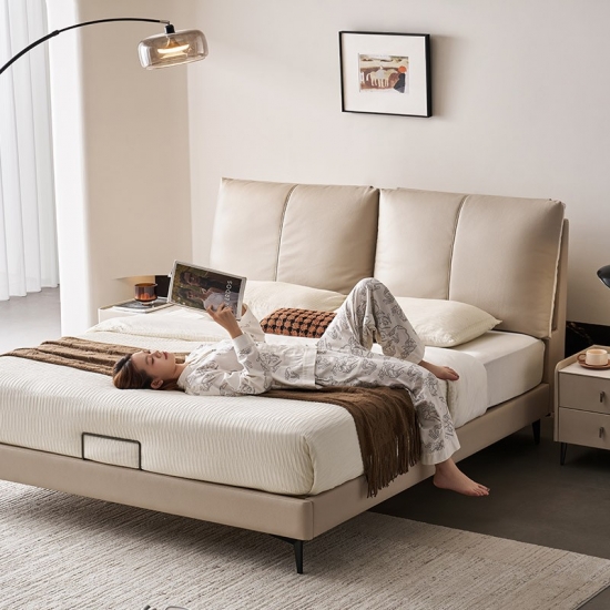 7Cama de madera y cuero color beige de elegancia moderna PC589-A