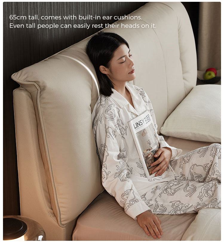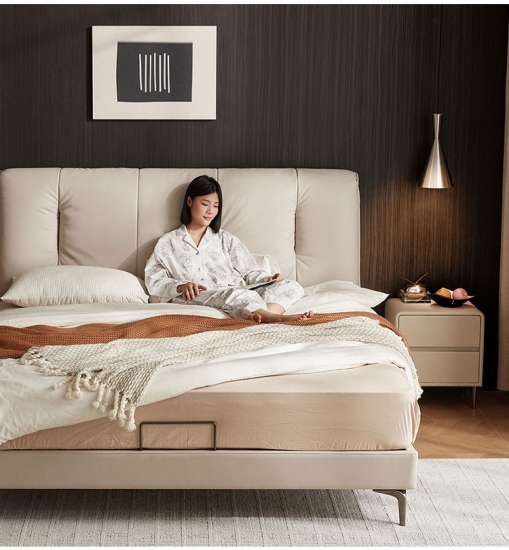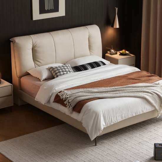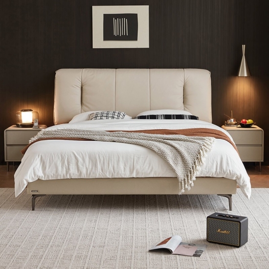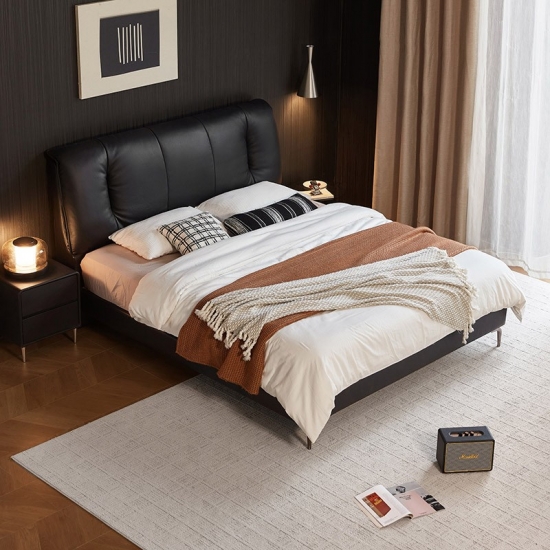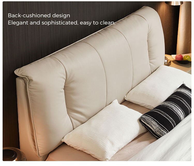 7Cama moderna tapizada con estructura de cuero y madera maciza PC591-A