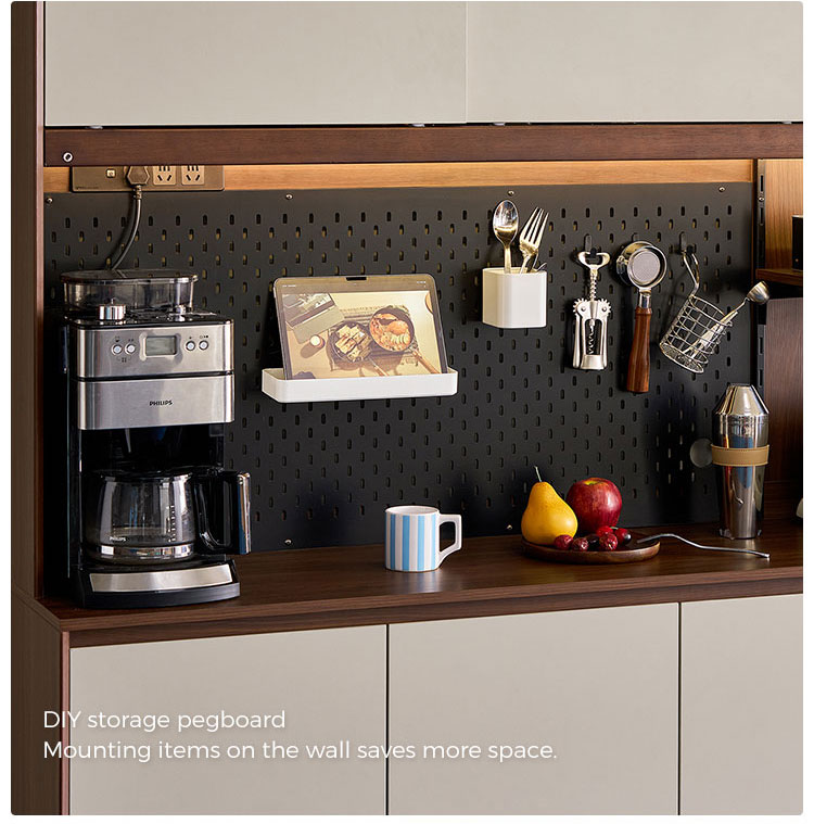 Diseño de varios cajones y tablero perforado – Combina cajones de deslizamiento suave con paneles perforados ajustables para una organización personalizable.