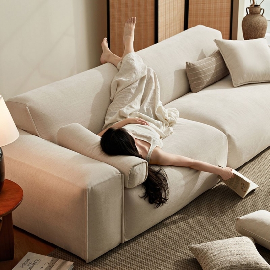 Dale la bienvenida a tu hogar a un estilo desenfadado y una generosa relajación con nuestro sofá de tela de gran capacidad, bellamente confeccionado en blanco puro. Diseñado para la vida moderna, este sofá combina una estética limpia y espaciosa con una comodidad excepcional y un amplio espacio, perfecto para reuniones familiares, noches de cine o simplemente para relajarse.