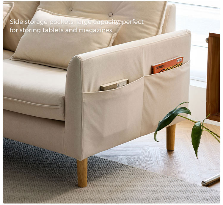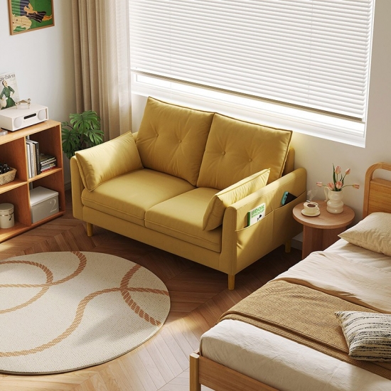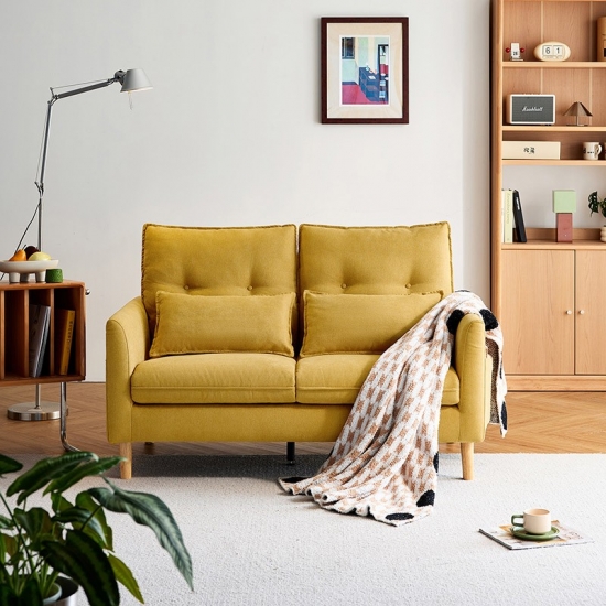 Eche un vistazo a este sofá de dos plazas, ideal para apartamentos, estudios o cualquier sala de estar acogedora. El sofá compacto de dos plazas BS806-A está diseñado para maximizar el estilo y la comodidad sin sacrificar la calidad. Fabricado con atención al detalle, cuenta con una robusta estructura de madera para una larga duración, sostenida por elegantes patas de madera maciza que le aportan un toque de atractivo y estabilidad atemporales. Su color cálido combina con diversas decoraciones.