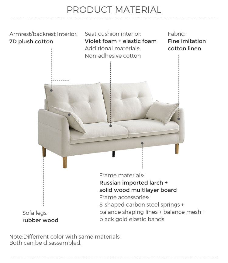 7Sofá de dos plazas moderno, blanco, de tela, cómodo y minimalista, BS806-A