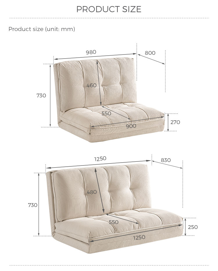 Diseñado para la vida moderna, nuestro sofá cama tatami beige combina a la perfección un diseño minimalista con una versatilidad multifuncional. Tapizado en una suave tela beige terrosa, este mueble aporta un toque cálido y relajante a cualquier espacio, a la vez que permite transformar fácilmente un elegante sofá en una espaciosa superficie para dormir.