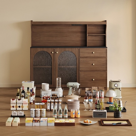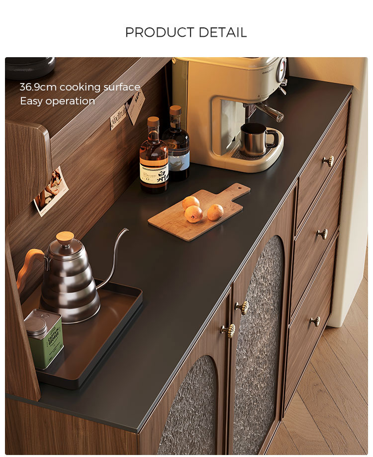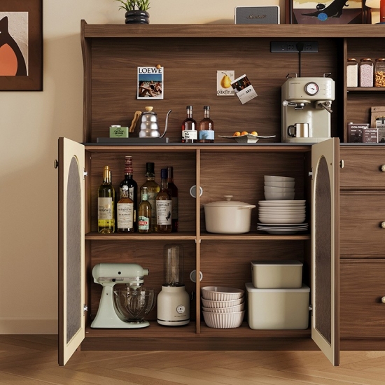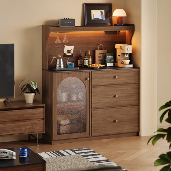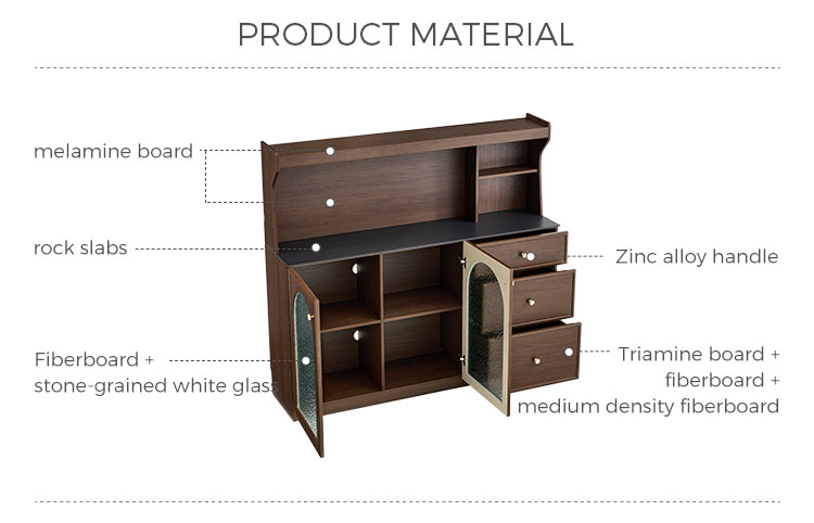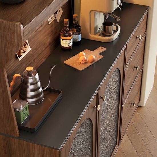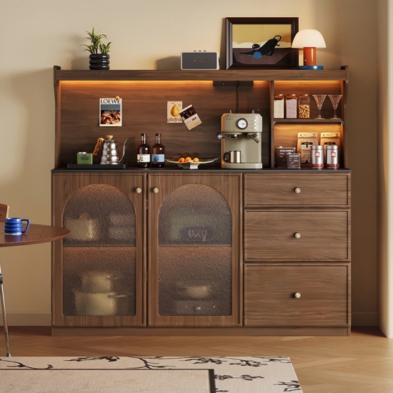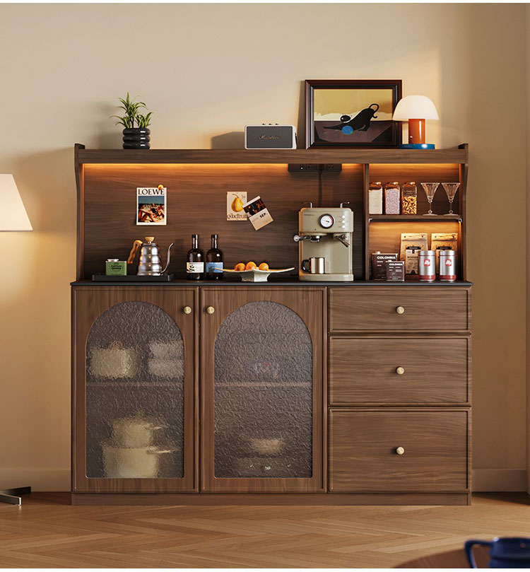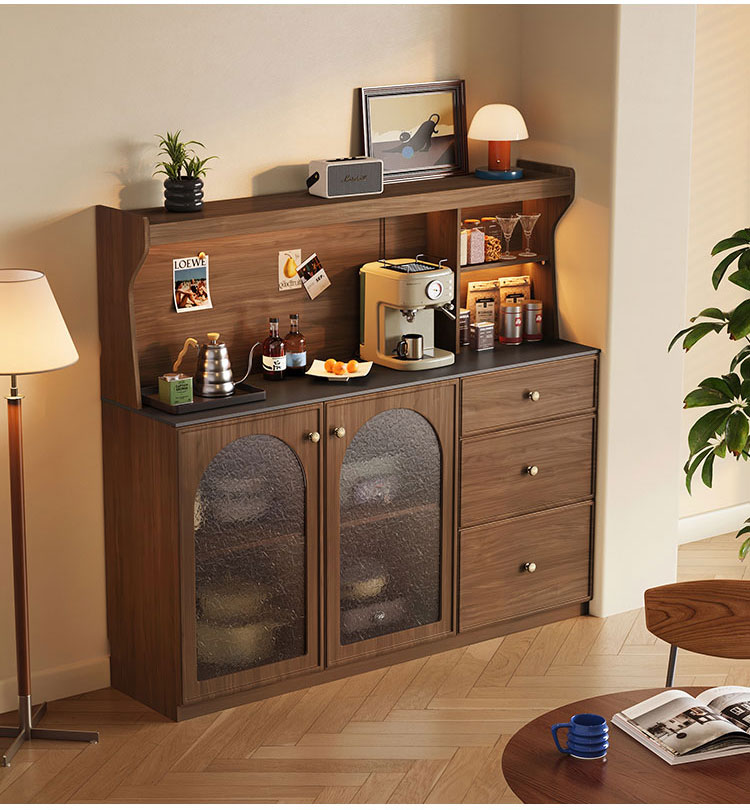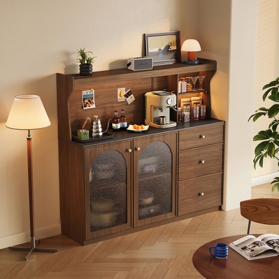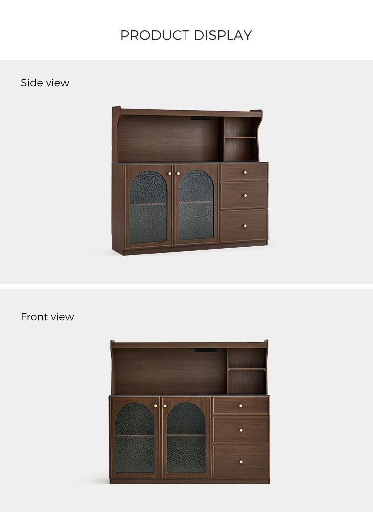 7Cómoda multifuncional de nogal de 1,6 m con cajones y puertas de cristal RC3T-A