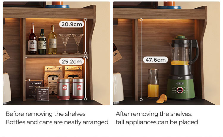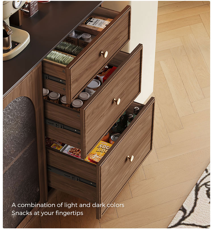 Almacenamiento versátil: Cuenta con una combinación de compartimentos con frente de vidrio y múltiples cajones espaciosos para un almacenamiento organizado y separado.