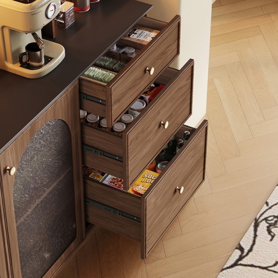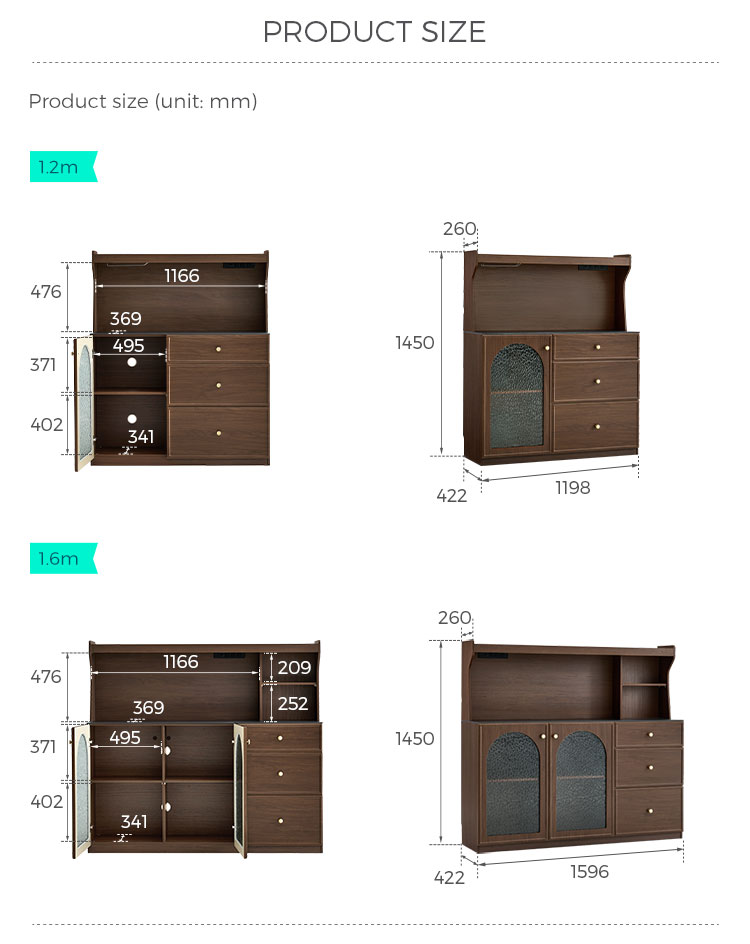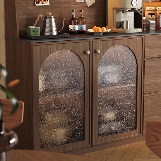 Cómoda multifuncional de nogal de 1,6 m con cajones y puertas de cristal RC3T-A |