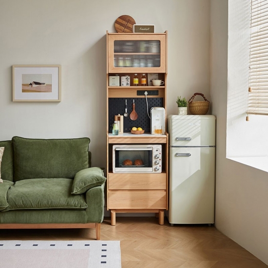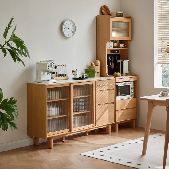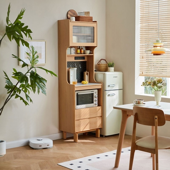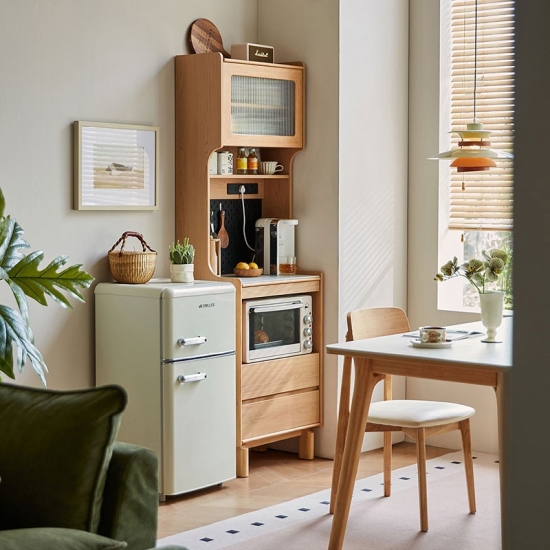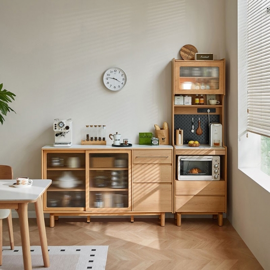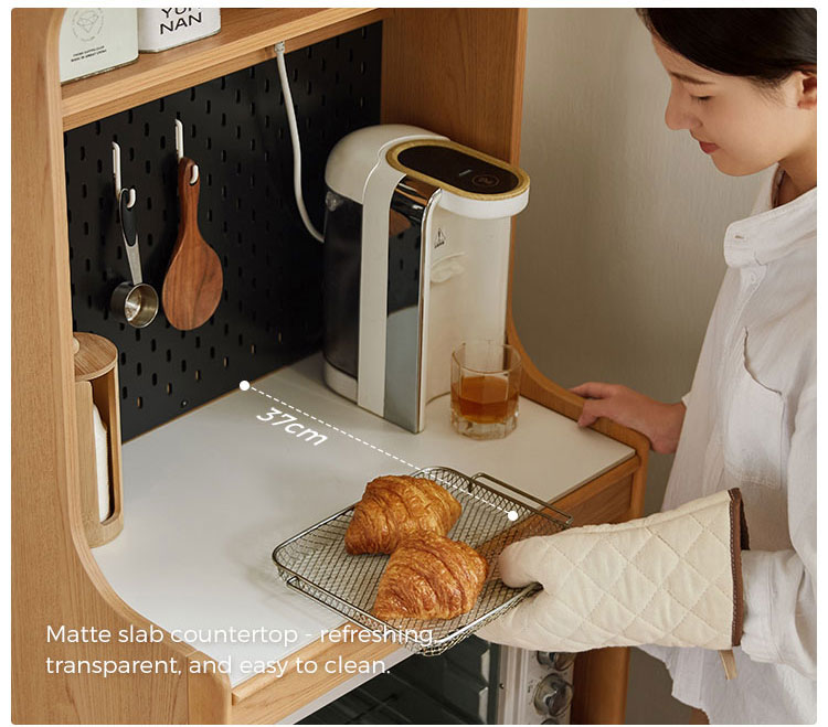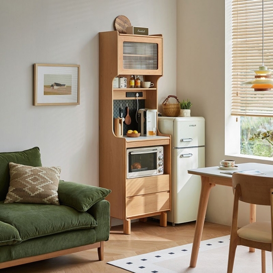 Solución de almacenamiento práctica: en el interior, los estantes o cajones bien organizados ofrecen amplio espacio para vajilla, ropa de cama y elementos esenciales para comer, manteniendo su espacio ordenado y sin desorden.
