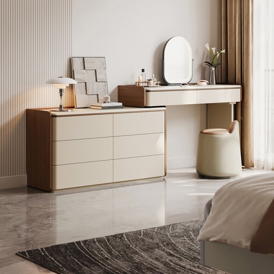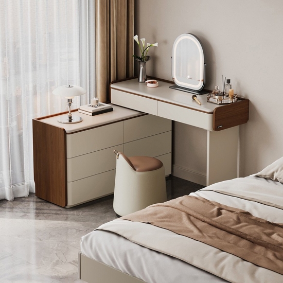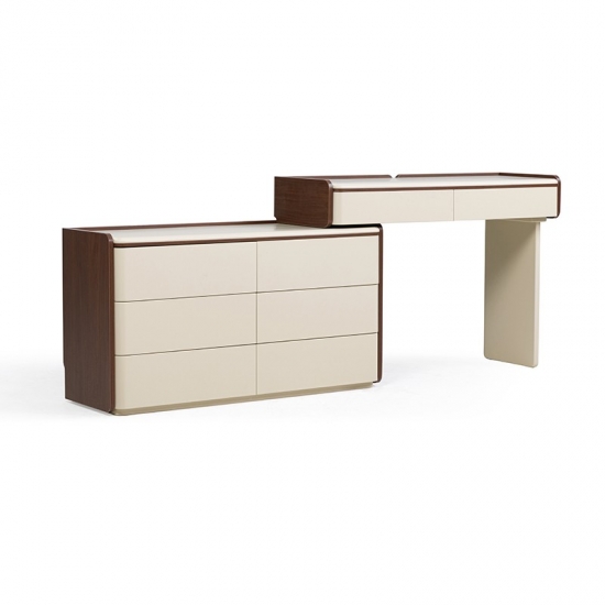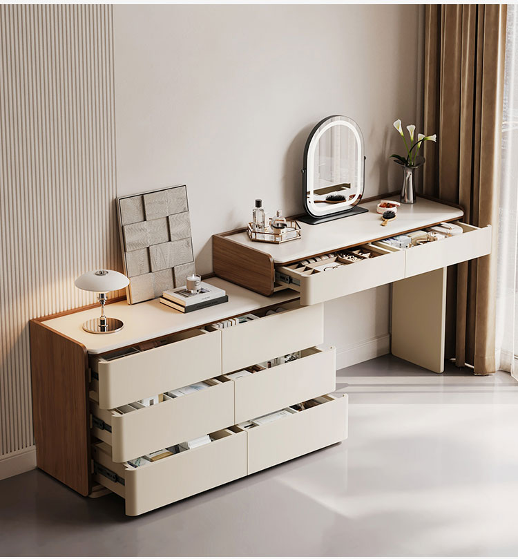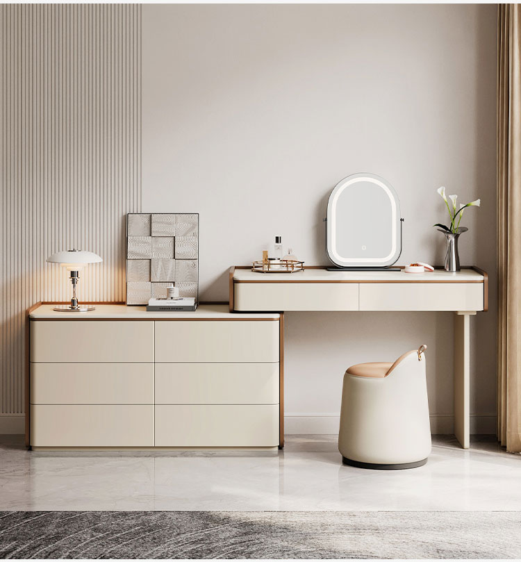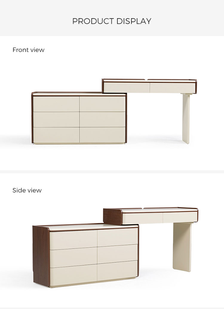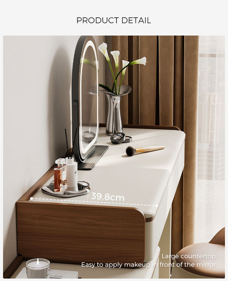 Diseño armonioso: Con líneas limpias y acabados de calidad, este tocador irradia una elegancia atemporal. Su diseño cohesivo garantiza que el espejo, los cajones y el marco se integren para crear un punto focal de lujo refinado.