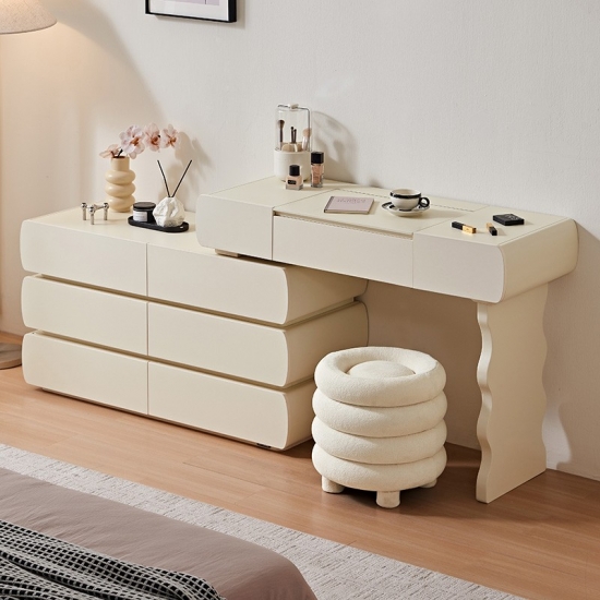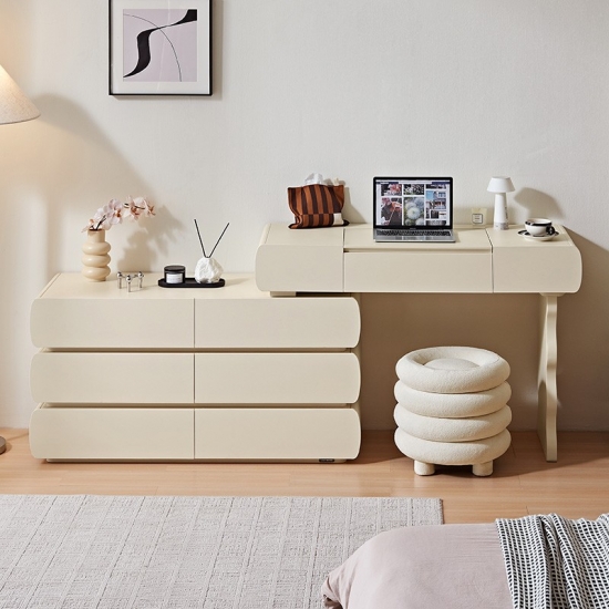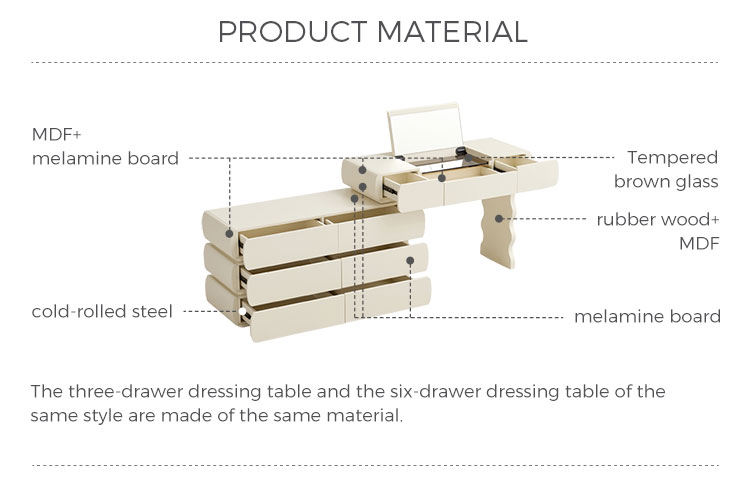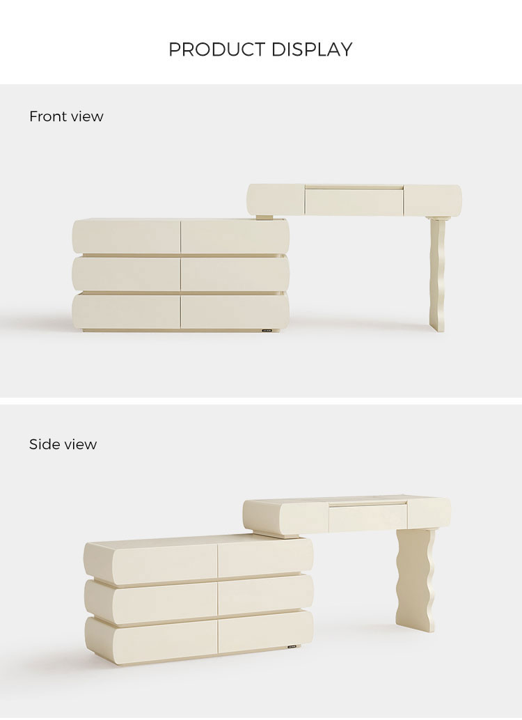 Diseño armonioso: Elaborado con líneas depuradas y acabados de alta calidad, este tocador irradia una elegancia atemporal. Su diseño coherente garantiza que el espejo, los cajones y la estructura se combinen para crear un punto focal de lujo refinado.