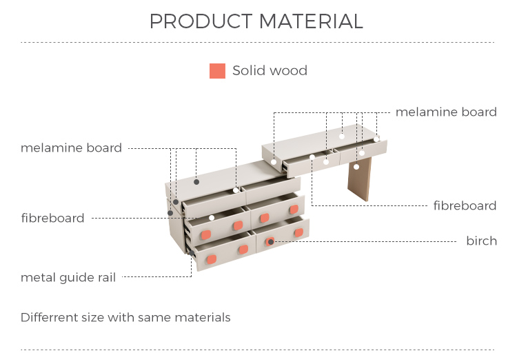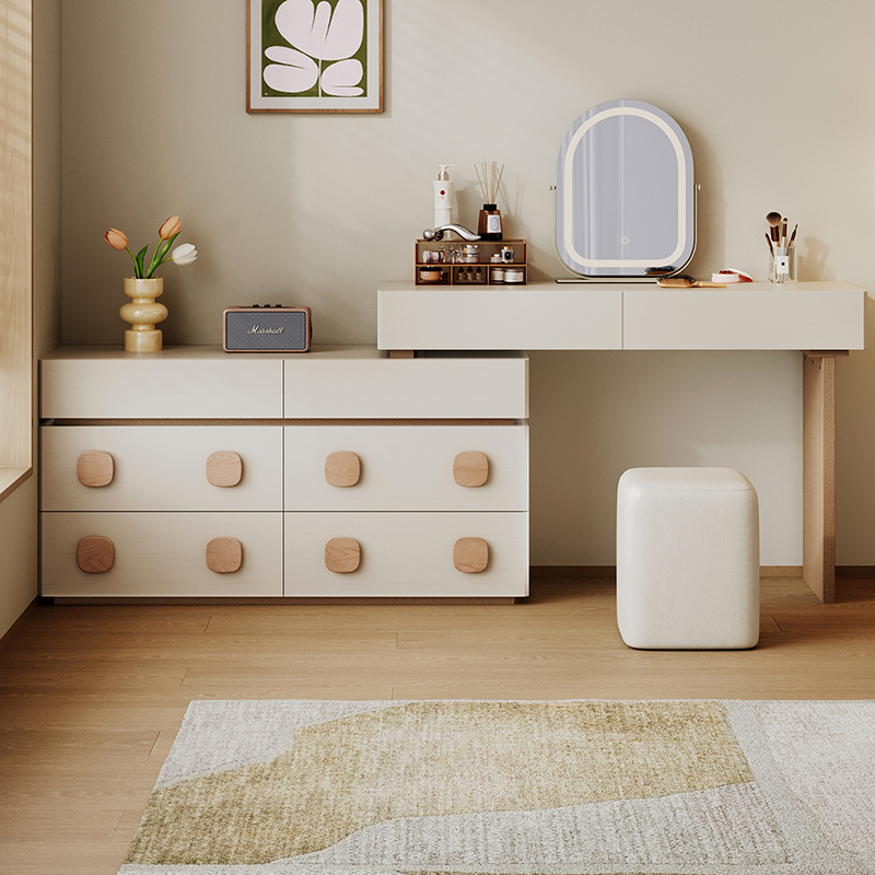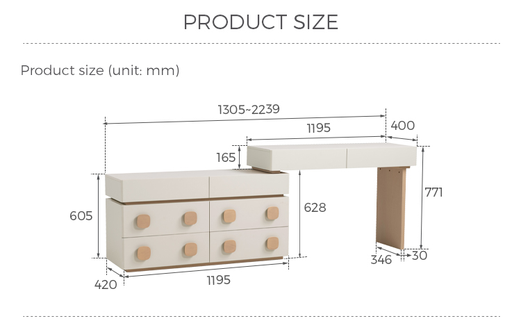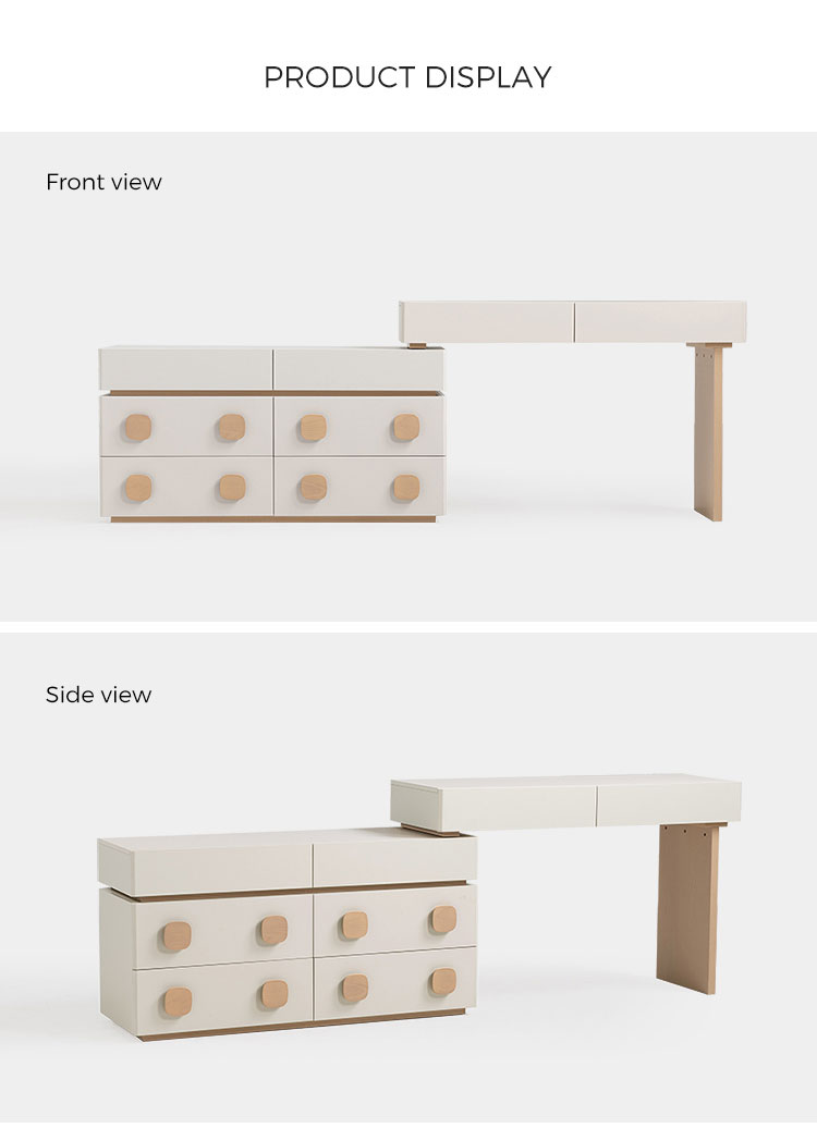Diseño armonioso: Con líneas limpias y acabados de calidad, este tocador irradia una elegancia atemporal. Su diseño cohesivo garantiza que el espejo, los cajones y el marco se integren para crear un punto focal de lujo refinado.