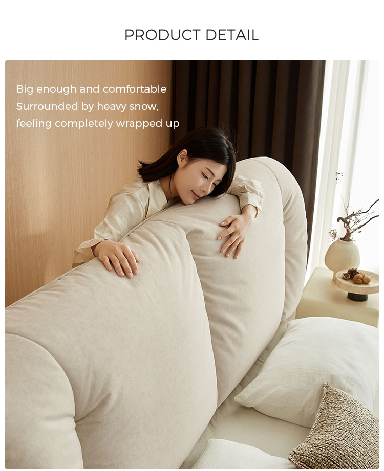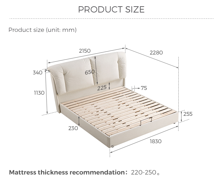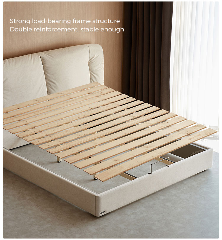LINSY Modern Bed Frame Cama de plataforma tapizada con cojín Beige R296